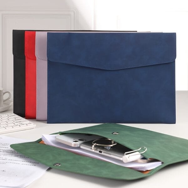 Premium Faux Leather Document Organizer – Magnetic Closure A4 Letter Size File Holder, Portable Briefcase Envelope for Office & Business Use