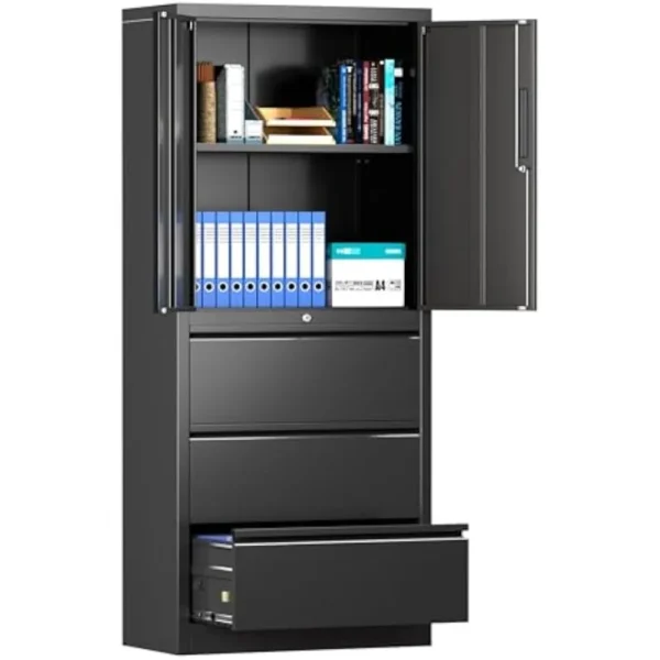 Black Lateral File Cabinet, with Lock3 Drawer Lateral for A4 Size, Metal Steel Locking Wide File Cabinet for Home Office – AliExpress 1503