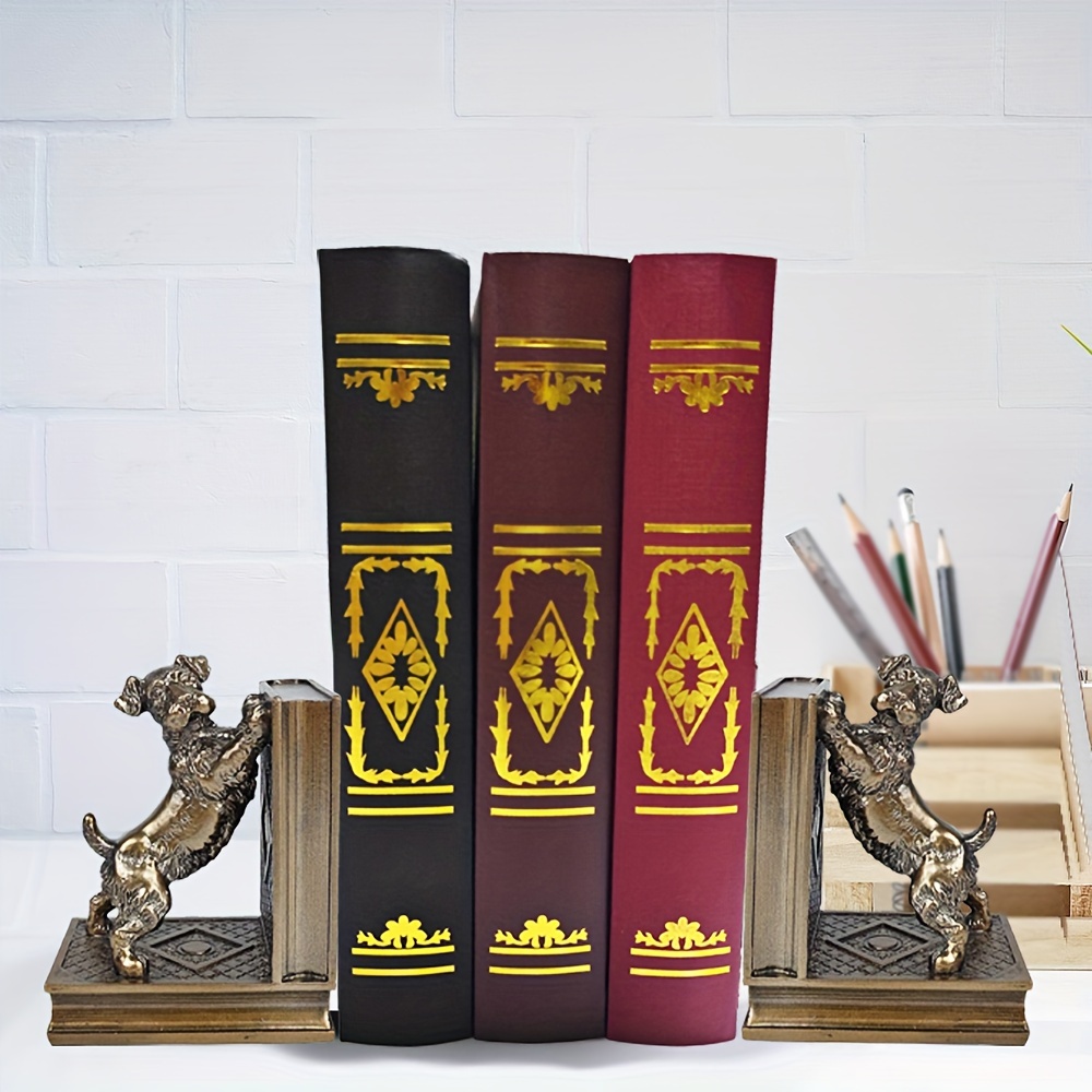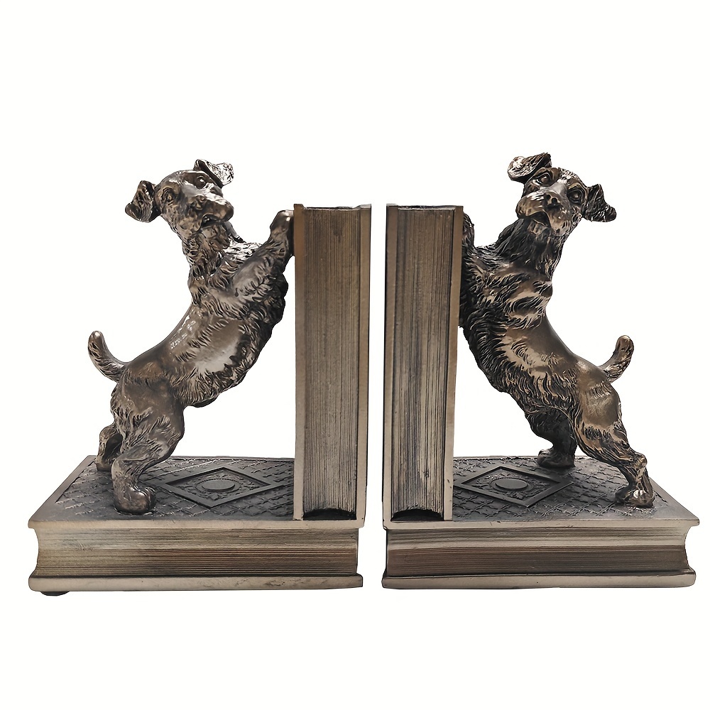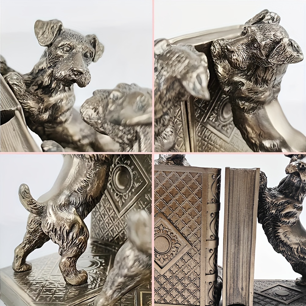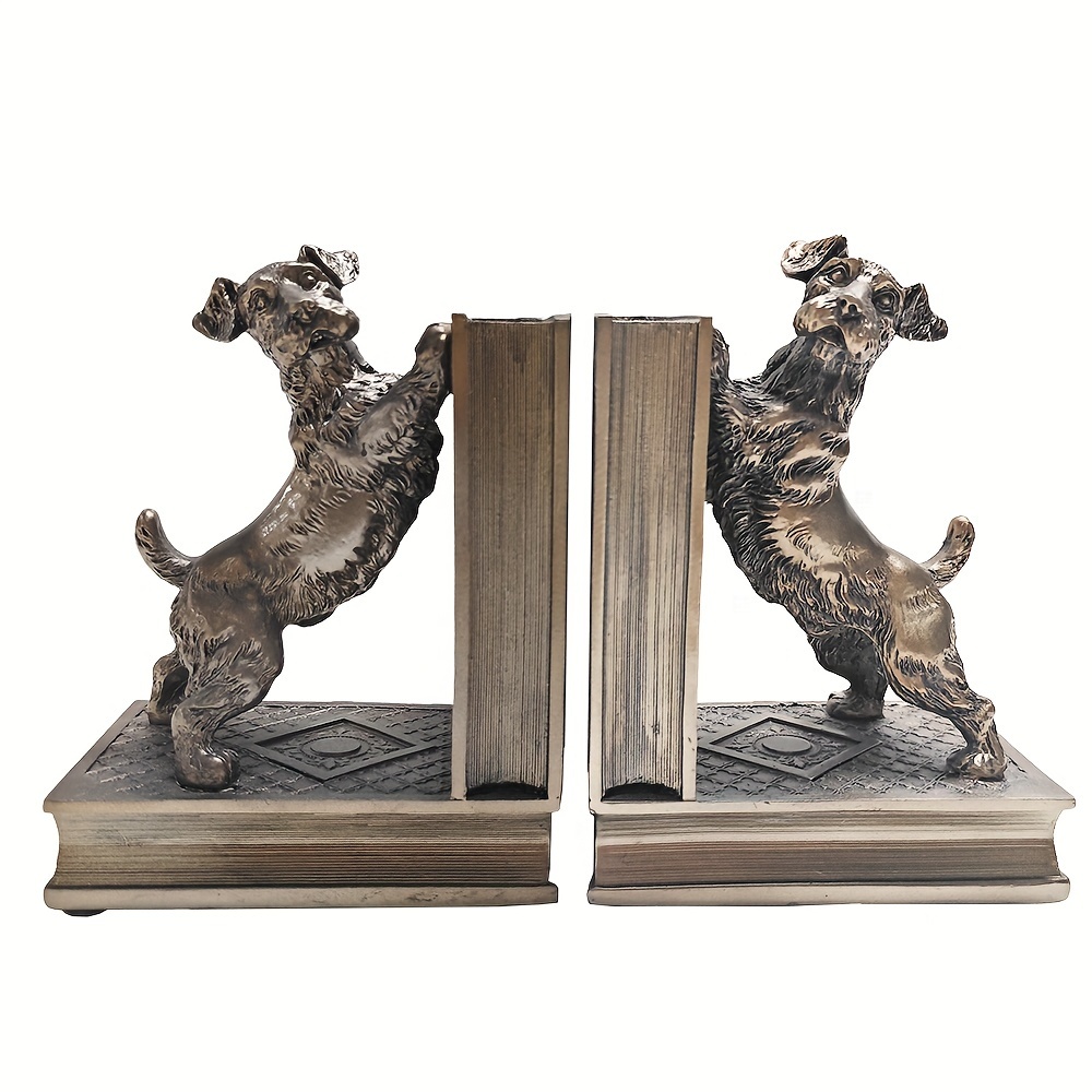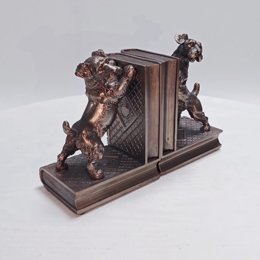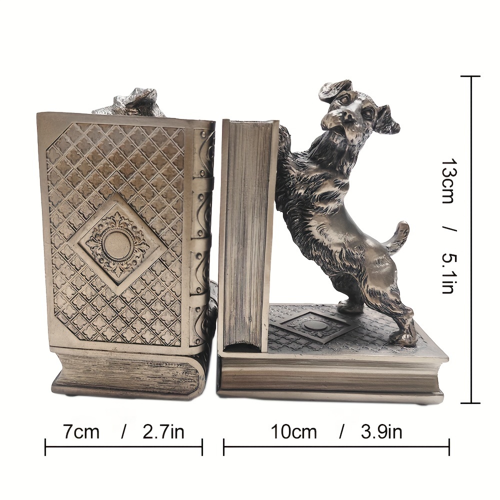 2 pcs bronze resin dog book holders, home decoration art book holders, children’s home decoration, are great gifts for family and friends on Holiday season and birthdays, suitable for offices, study rooms, bookshelves, bedrooms