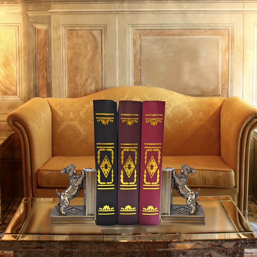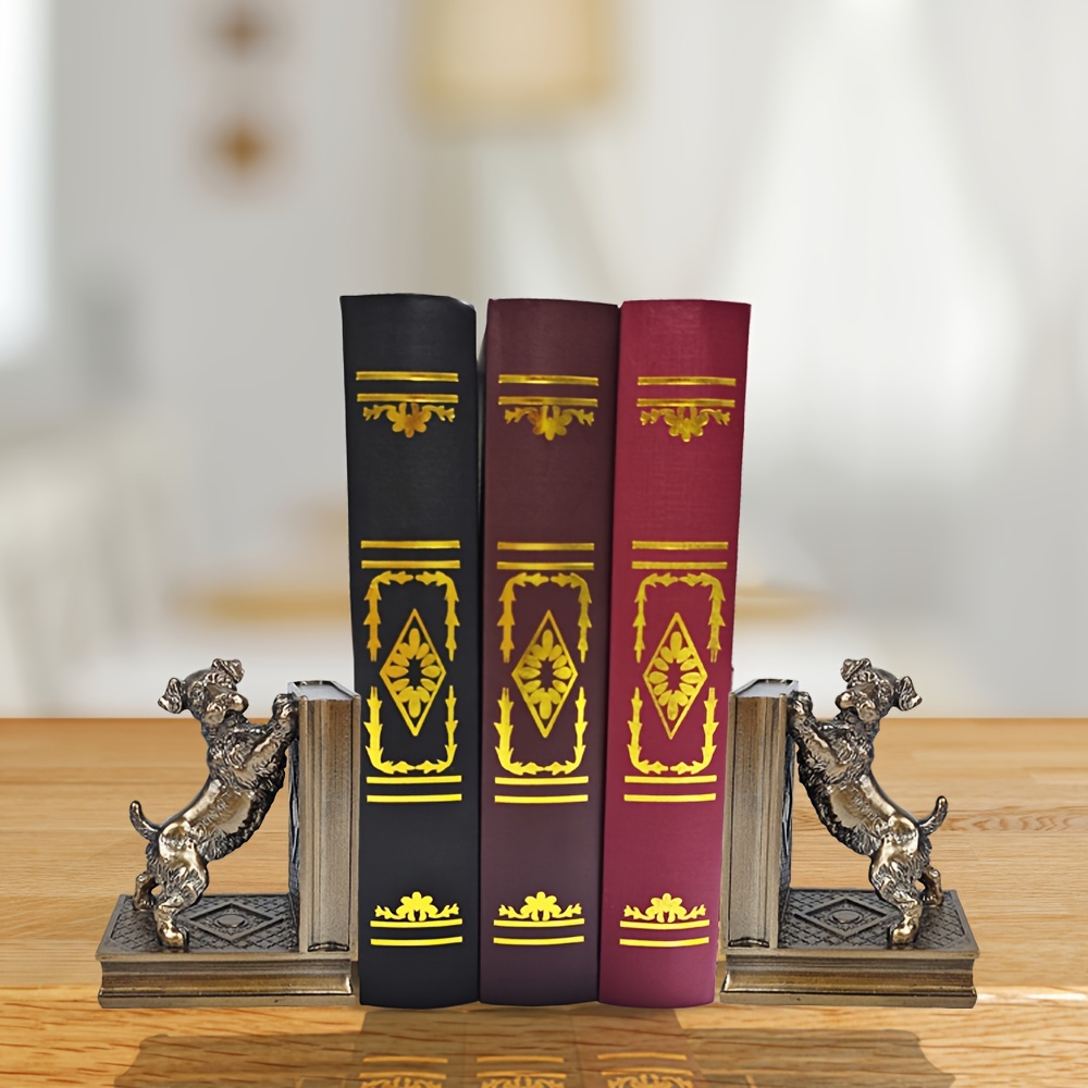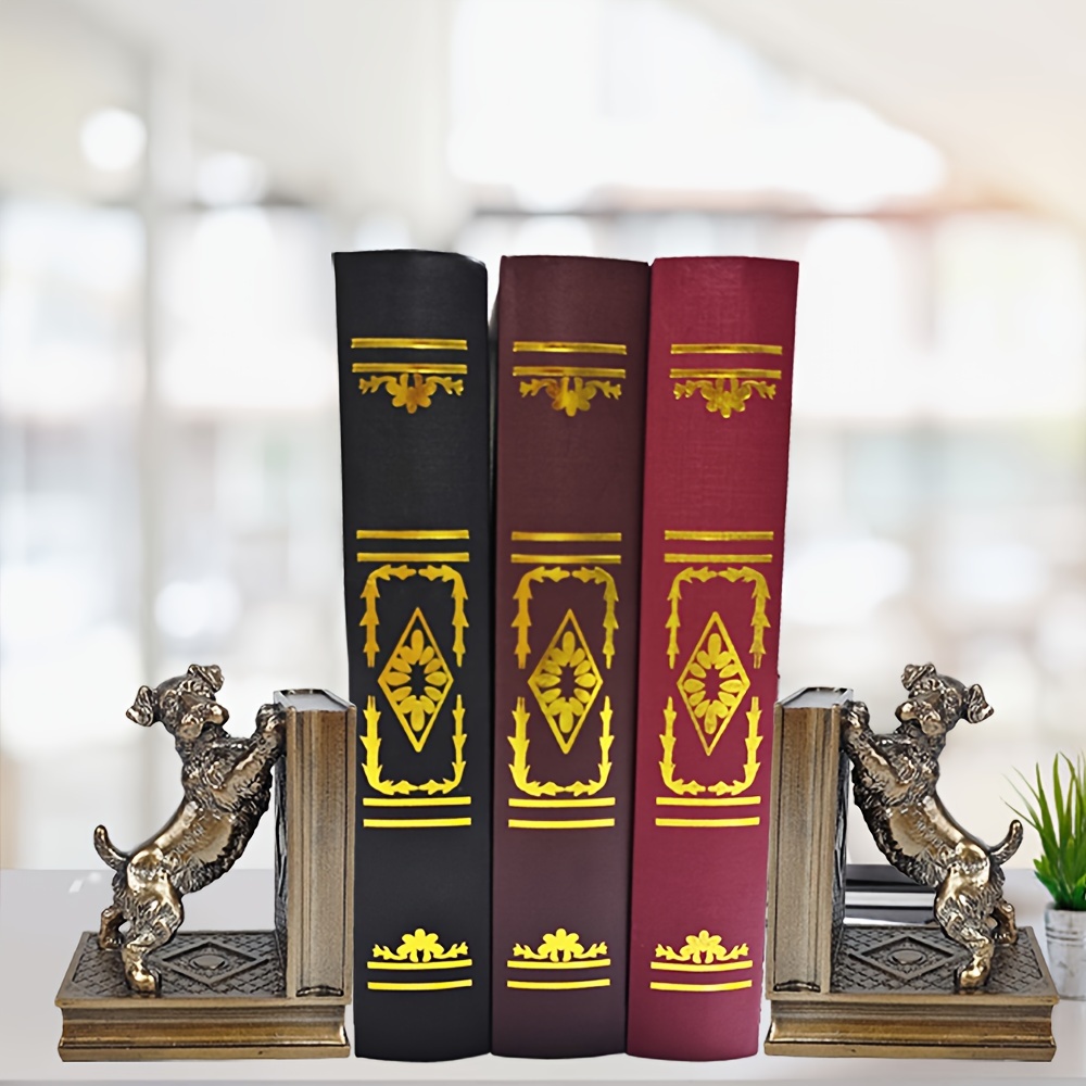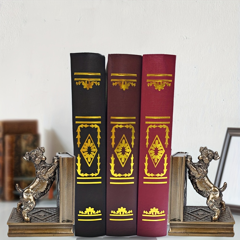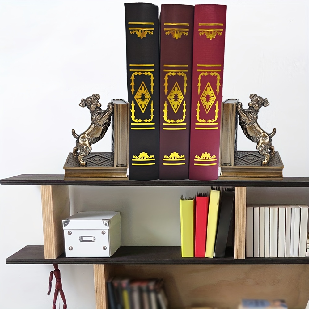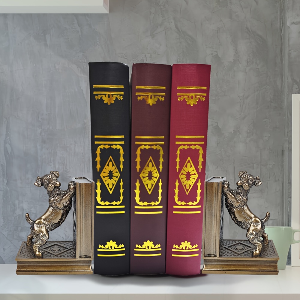 2 pcs bronze resin dog book holders, home decoration art book holders, children’s home decoration, are great gifts for family and friends on Holiday season and birthdays, suitable for offices, study rooms, bookshelves, bedrooms