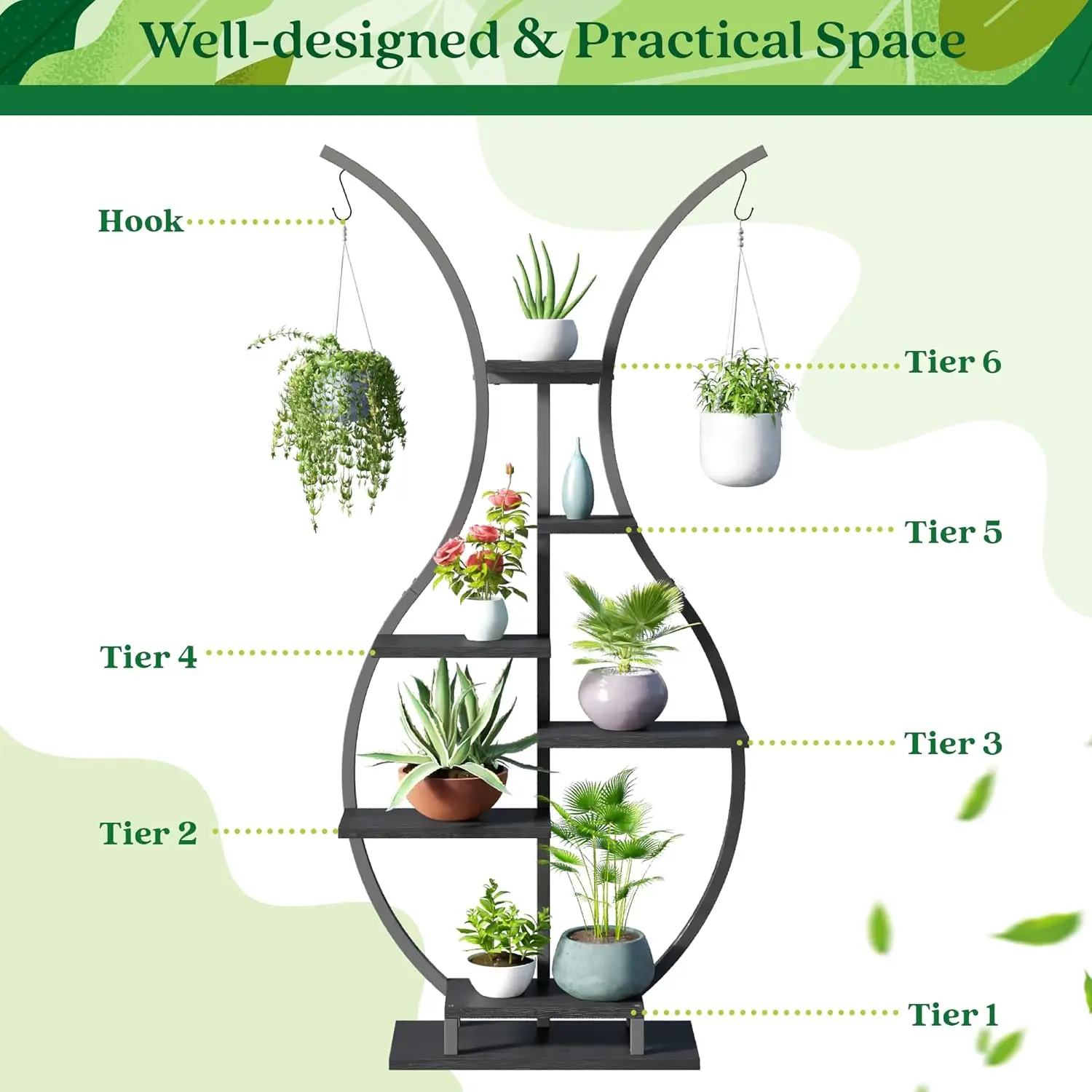- 💖【Unique Vase Shape】 Not only are you a plant lover, but you can also unleash your inner artist. Arrange your small potted plants to form the shape of a large vase. This plant shelf is a perfect way to decorate your room and add some greenery to your life.