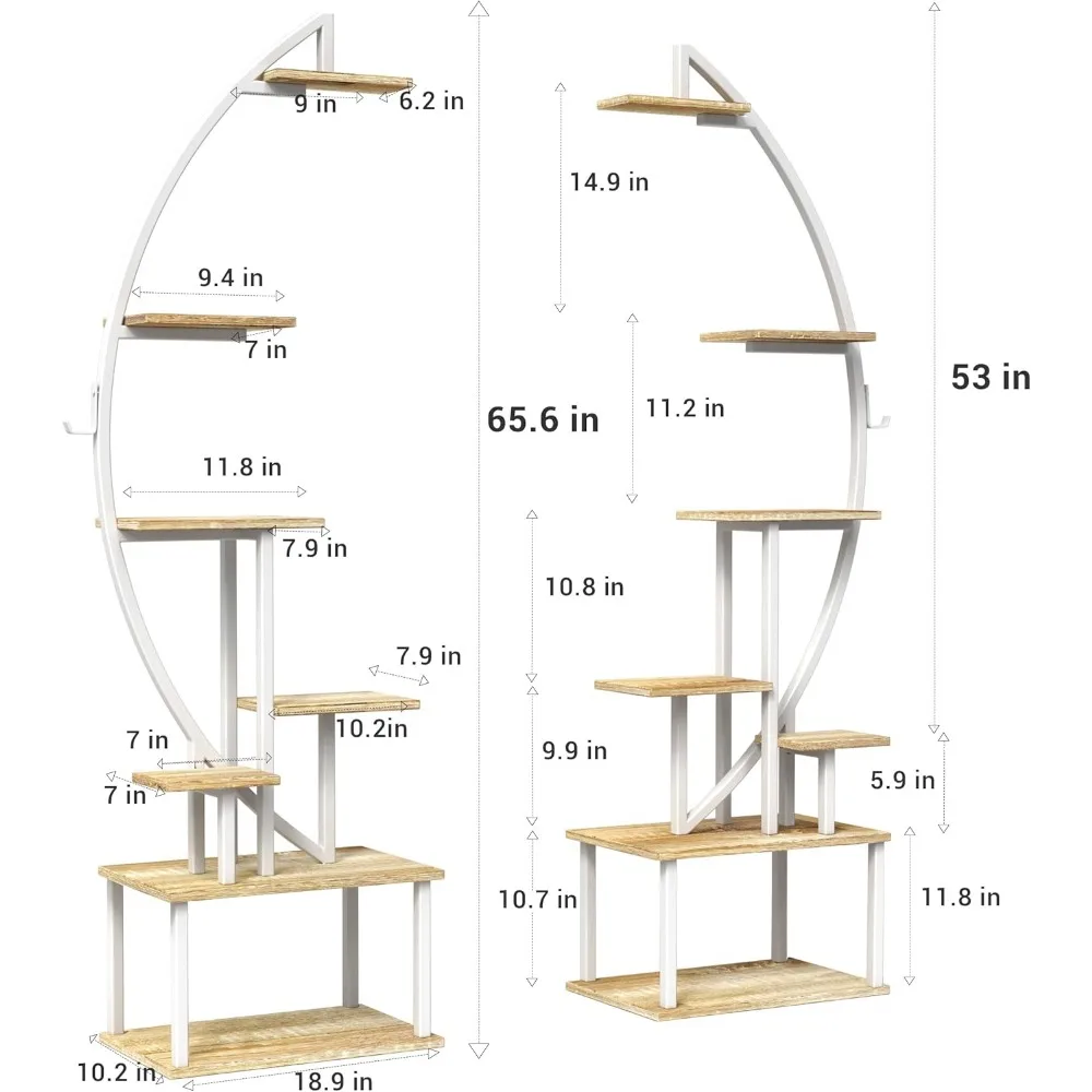 - 【7 Tiered Indoor Plant Stand】 This 64″ tall plant stand set has 7 tiers, 14 potted stands, and 2 hangers which provdes large storage space for you to display plants as much as possible. Some levels can even accommodate two plant pots. In addition, this plant holder also meets your different demands of placing books, pictures, collections, awards, knacks, artworks, craft works, and so on.