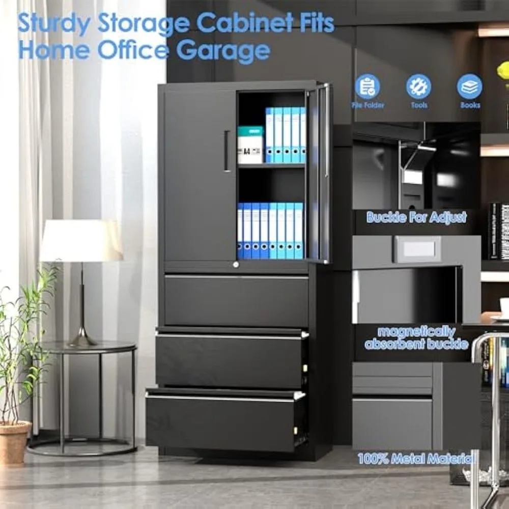 70.1″ H Metal File Cabinets,File Cabinet with Lock and Adjust Shelves,3 Drawers Office Storage Cabinet with Lock for – AliExpress 1503