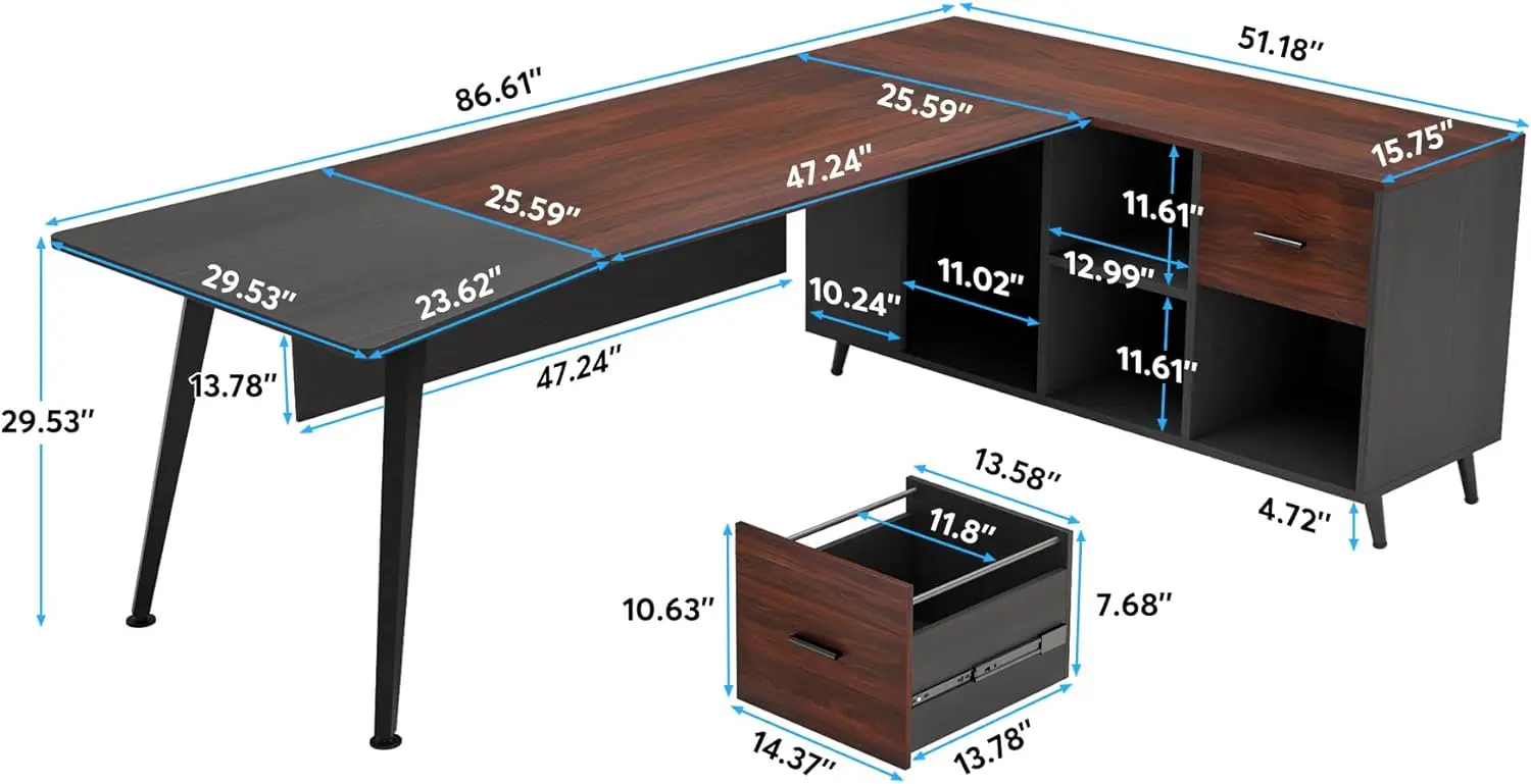 【USER-FRIENDLY OFFICE FURNITURE SET 】: Looking to upgrade your home office space? We can help! Create a fresh look in your office with the modern style and functional design of this L-shaped Executive desk. Vintage spliced mocha cherry and grey finishes with tapered leg accents for an alluring appearance to match your home office. L desk fits nicely in any tight space, allows you to take full advantage of your abode office workspace.
