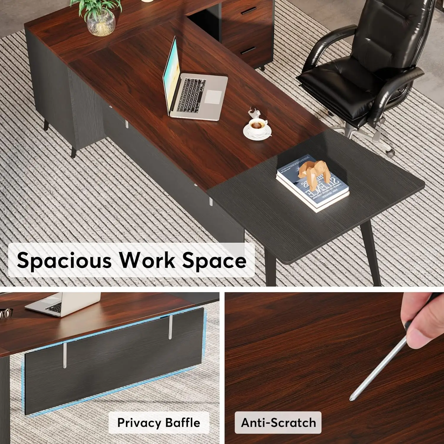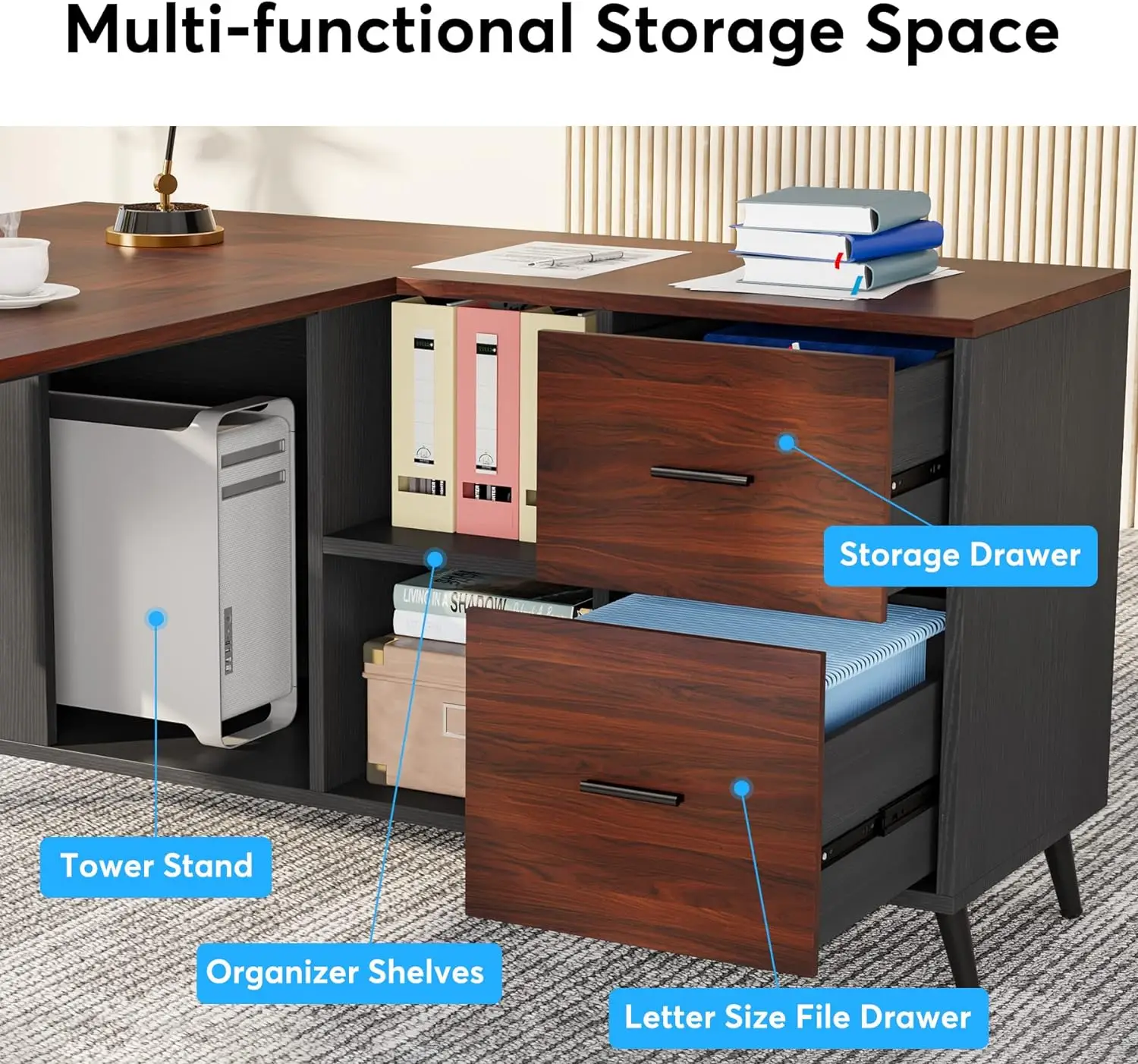 【USER-FRIENDLY OFFICE FURNITURE SET 】: Looking to upgrade your home office space? We can help! Create a fresh look in your office with the modern style and functional design of this L-shaped Executive desk. Vintage spliced mocha cherry and grey finishes with tapered leg accents for an alluring appearance to match your home office. L desk fits nicely in any tight space, allows you to take full advantage of your abode office workspace.