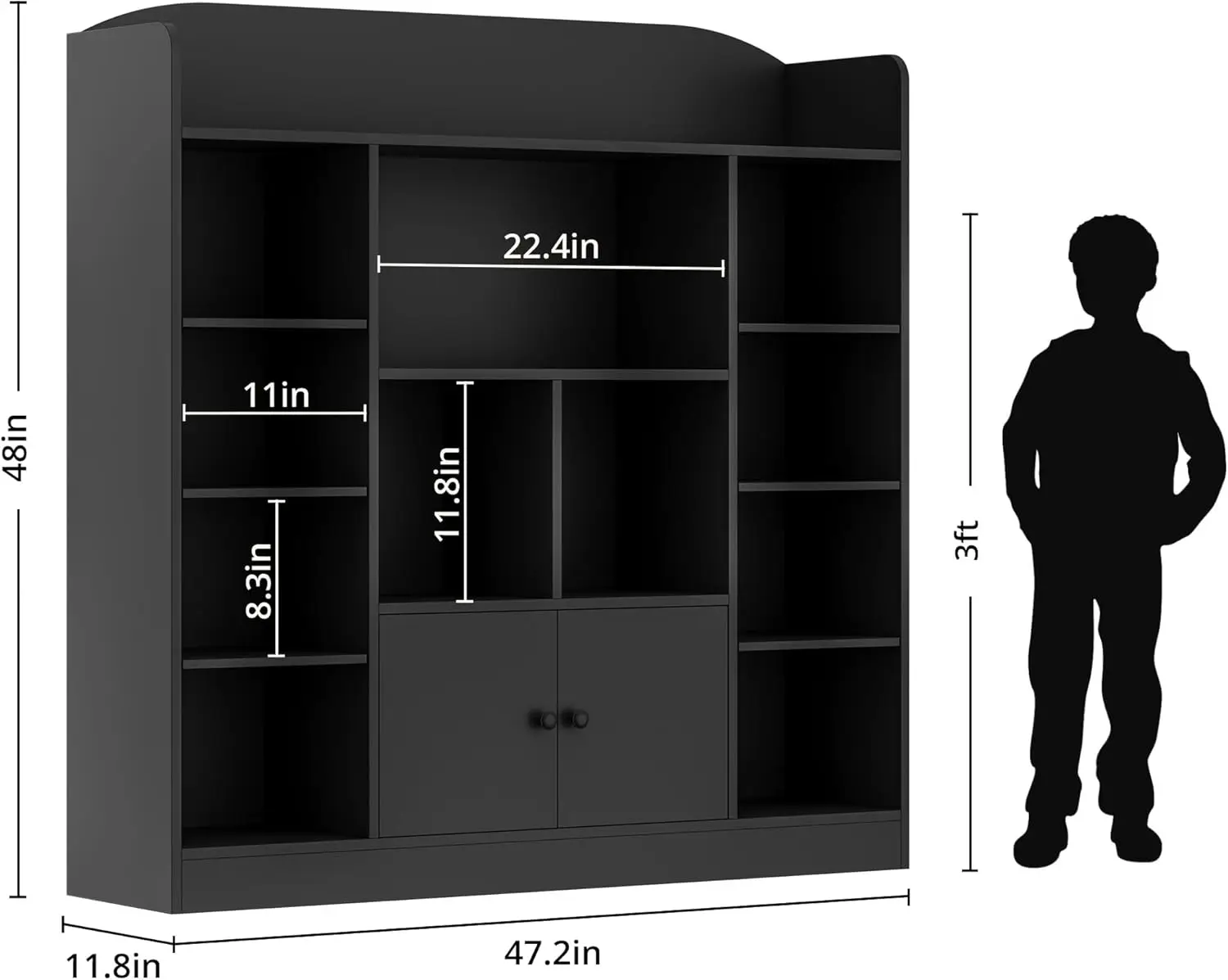 - ✔Compact Storage Space. This bookshelf comes with 11 open storage shelves and 2 closed storage cabinets. Not only does it provide ample storage space for all your belongings, and the height of the bookshelf is suitable for children.