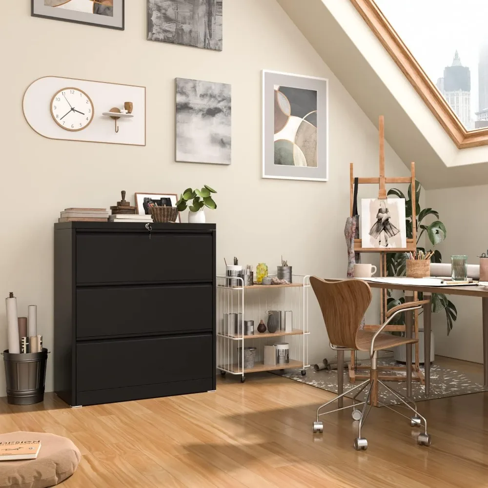 - 【High-quality Material, Eco-friendly Surface】: Office lateral file cabinet is made of high-strength cold-rolled steel frame, which allows each drawer of black file cabinet for holding 110 lb, for a total of 330 lb. Coated with Electrostatic phosphorus free epoxy spray layer, making it very strong and immune to corrosion and rust, Ideal for long-term to use.