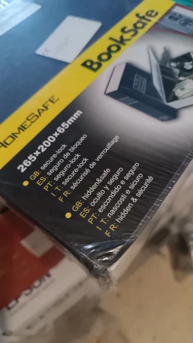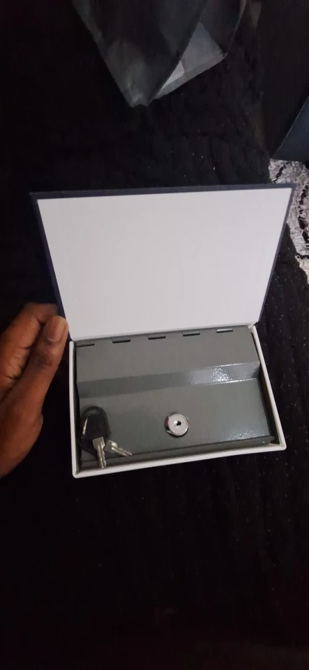 1. The surface is covered with high-quality textured paper, the paper is exquisite and the matte feel shows the quality 2. Can store coins and banknotes without unlocking, very convenient 3. Thickened steel liner, safe and reliable 4. The side pages are made of epoxy resin, with a vivid image 5. The thick steel plate of the safe shell is durable 6. The key and the lock are uniquely matched, each box is equipped with 2 keys 7. Can store important documents, certificates, jewelry, cash