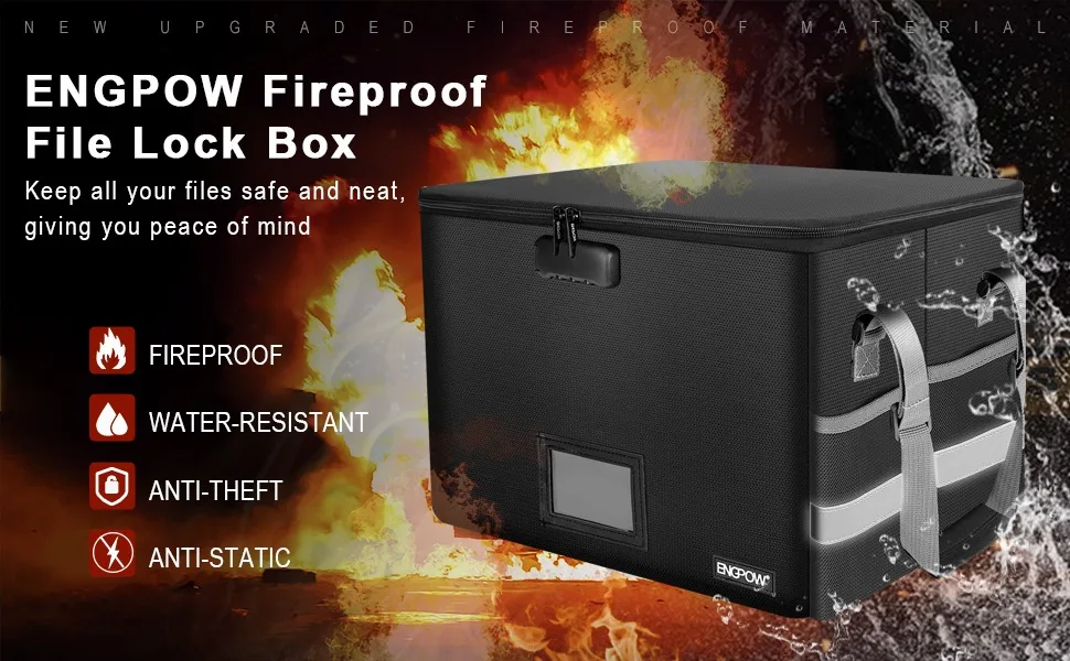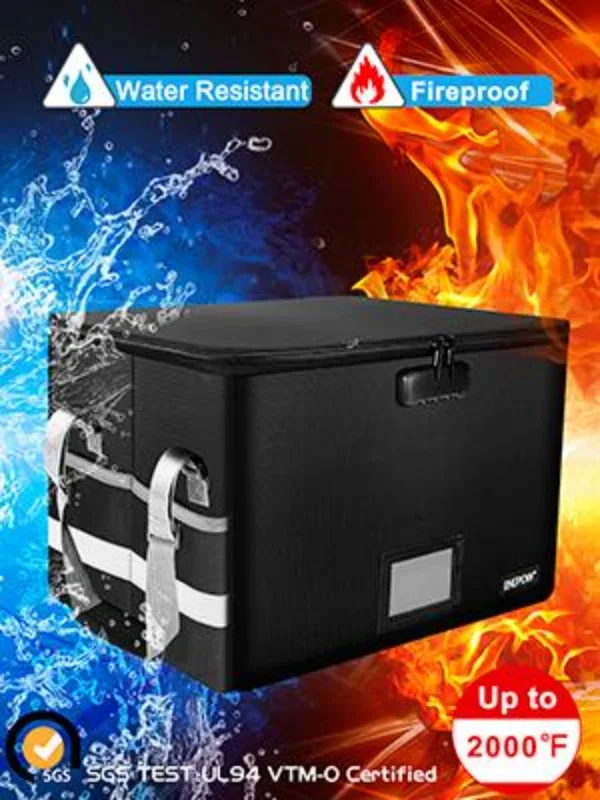 - Fireproof and water-resistant: Fireproof lock box is made of double layered non-itchy silicone coated fiberglass which stands up the temperature up to 2000℉.It has been passed by SGS TEST(UL94 VTM-0 Certified).Fireproof file box is not only fireproof but also high water resistant in case it gets wet for any reason.Nothing is completely foolproof, but added protection is always a good idea.