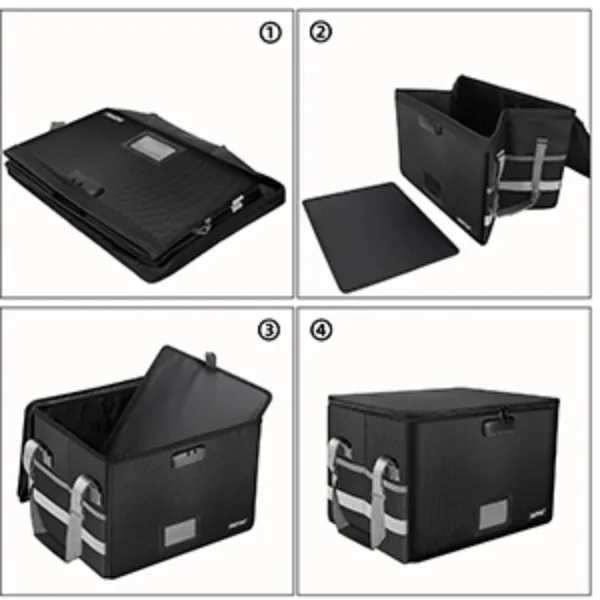 The fireproof storage bin collapses down simply for easier storage when not in use.It is not only convenient for storage, but also saves space.High quality PP(polypropylene) boards increase the rigidity of the box so you can easily sit on it or stack multiple boxes together.