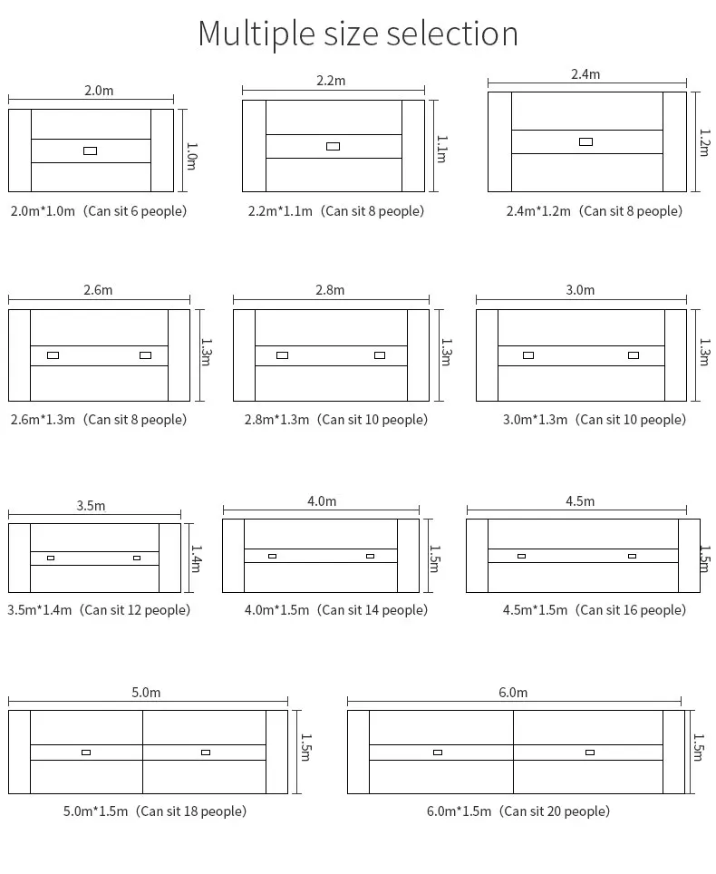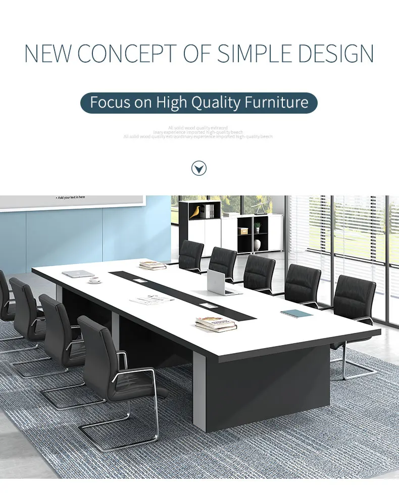 product name Conference table brand name Lin Duan brand name Guangzhou, Guangdong, China size length 2000/2200/2400/2600/2800/3000/3500/4000/5000/5500/6000mm width 1000/1100/1300/1400/1500mm height 750 material E1 Melamine panel port of loading Guangzhou/Shenzhen delivery time 20-30 days after receiving payment installation Disassembly and delivery, arrival needs to be installed by yourself (liftingFor installation drawings and installation videos) package High resilience pearl cotton, high shockproof foam, corner guard,High-strength anti-paper pressure box service Support color and size customization, please contact