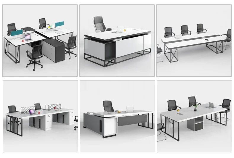 A:There is a desk, conference table, boss table, file cabinet, reception desk, sofa coffee table
