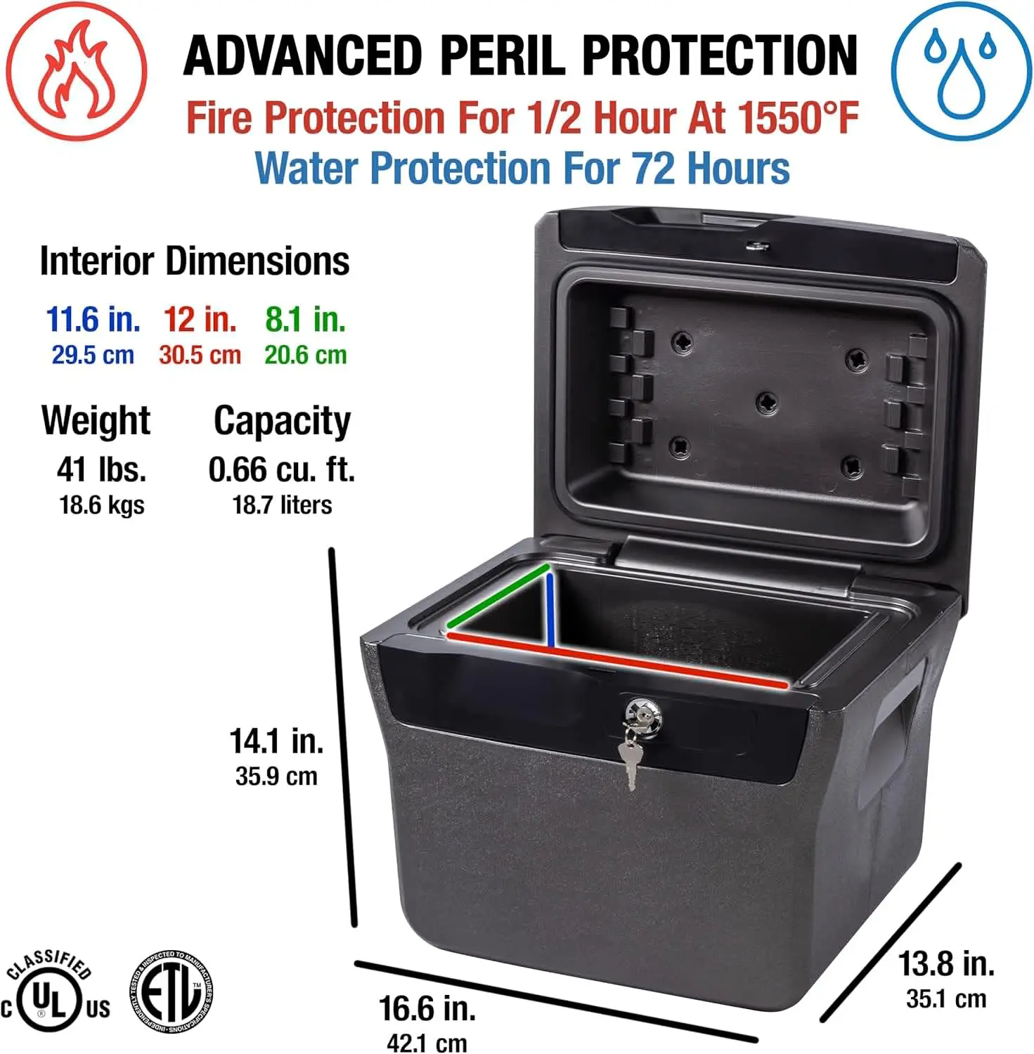 - WATERPROOF: safe is ETL Verified for 72 hours of submersion offering peace of mind in event of a flood