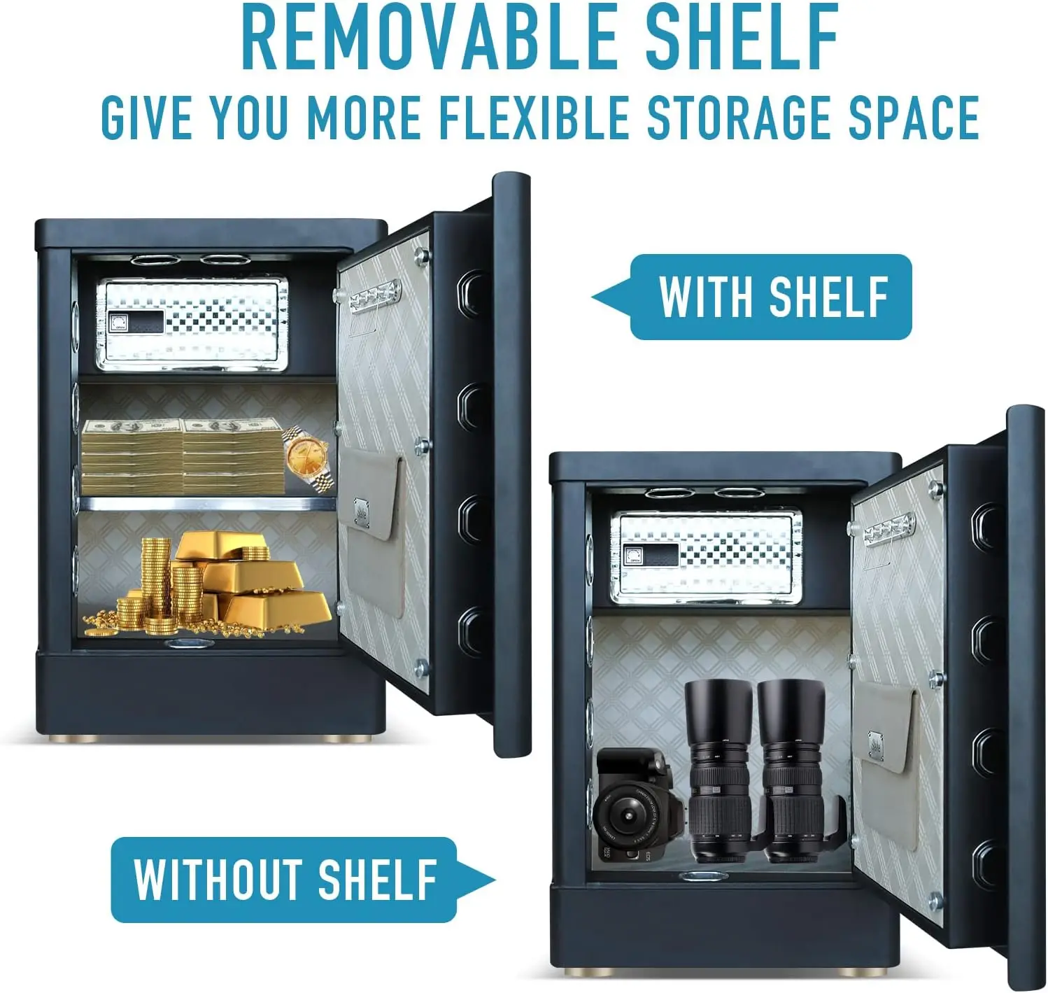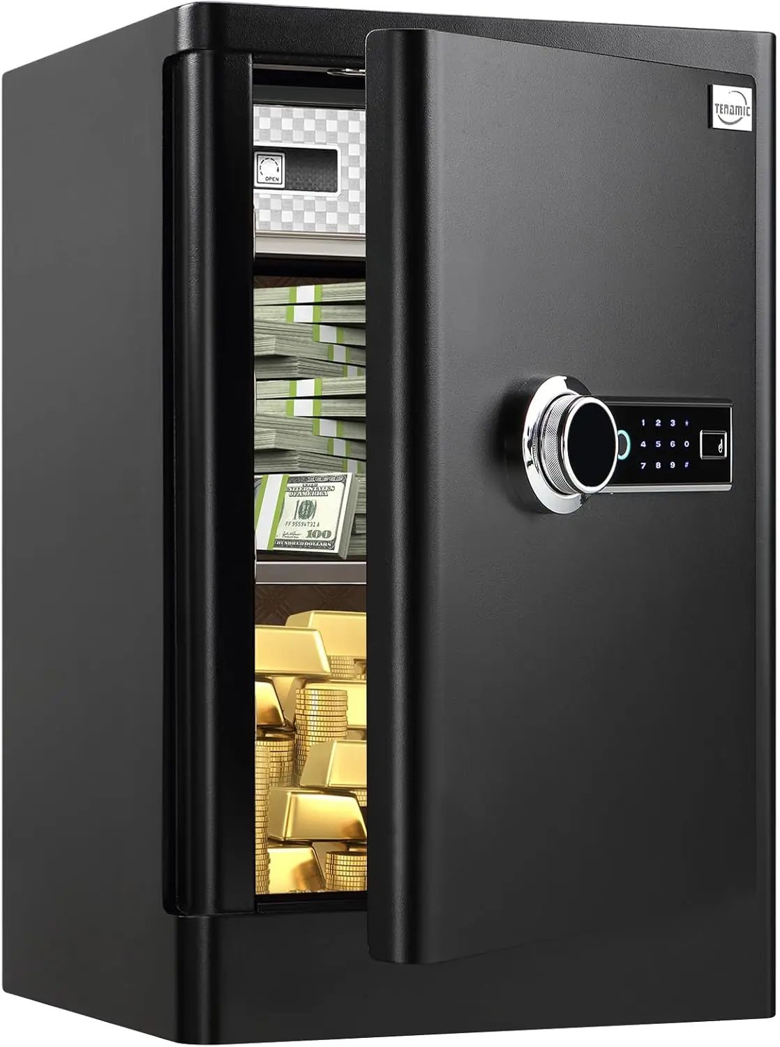 - ✅【STRONGER MATERIAL】: TENAMIC biometric safe box is made of the better solid steel, the surface has anti-corrosion and anti-wear powder coating. This security safe has a pry-resistant steel door and concealed pry-resistant hinges to offer you complete peace of mind. If necessary, you can fix it on the wall. No one can take away the contents of the safe without your permission. The new version of the safe greatly strengthens the packaging, and equips with foot pads.