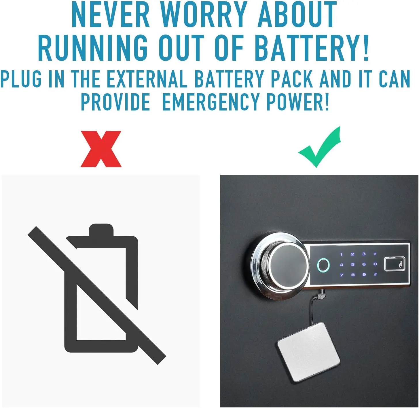 - ✅【BETTER CONFIGURATION】: As soon as you open the security box, the light will light up and go out automatically after 30 seconds. The inside of the safe is covered with leather to prevent wear and tear of valuables. The safe box also has an emergency external battery pack. When the internal battery is exhausted, you can plug it in to provide emergency power.
