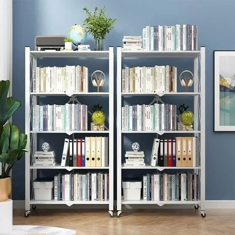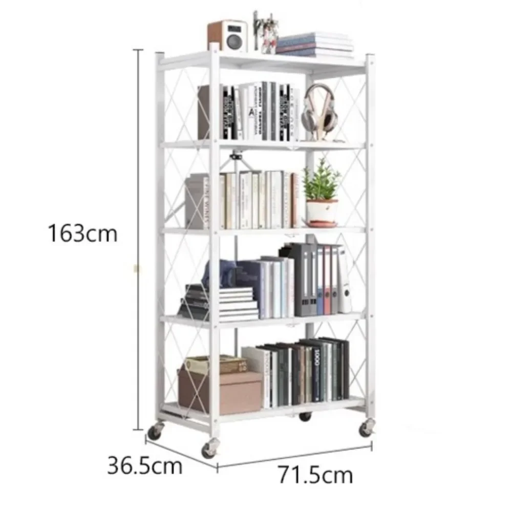 Folding Kitchen Storage Rack Installation-Free Outdoor Flower Stand Shelves Carbon Steel Bookshelf With Wheels Trolley Bookcase