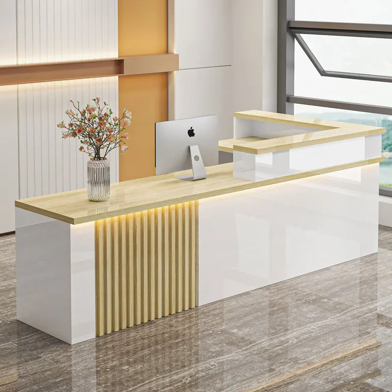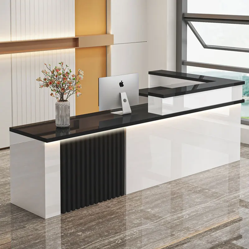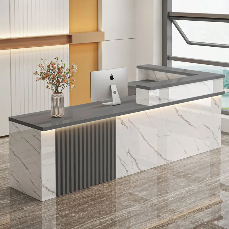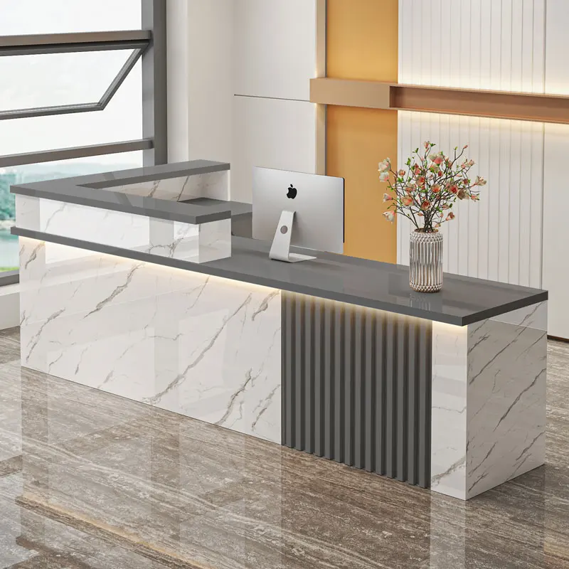 1. Sophisticated Design Premium Materials: The reception desk boasts a sleek, modern design with a stunning marble-textured top that exudes elegance and luxury.