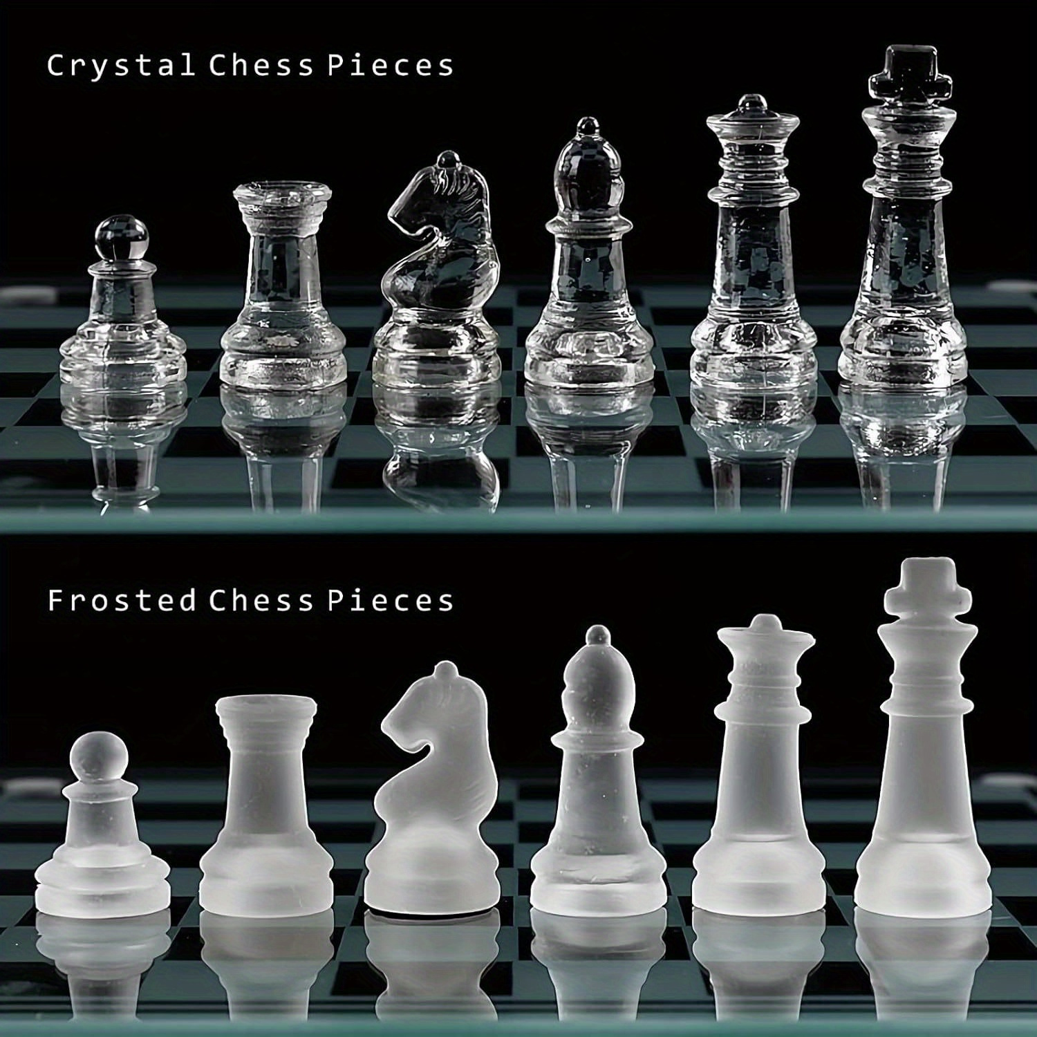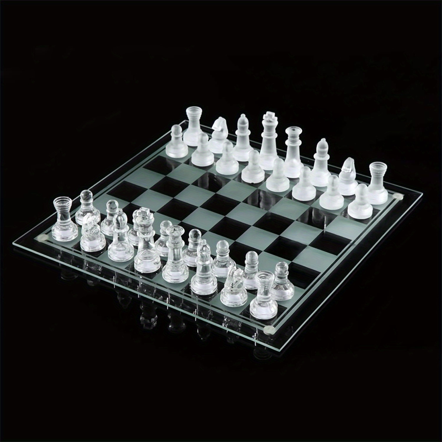 This chess set, made of high-quality glass, features pieces with a substantial weight and a soft felt base for easy movement on the board. Its sophisticated design not only makes it an eye-catching focal point but also a great conversation piece. Suitable for players of all ages and skill levels, this set is simple to understand and enjoyable to play with. Whether as a present or for personal use, this exquisite glass chess set is sure to leave a lasting impression and enhance your gaming experience
