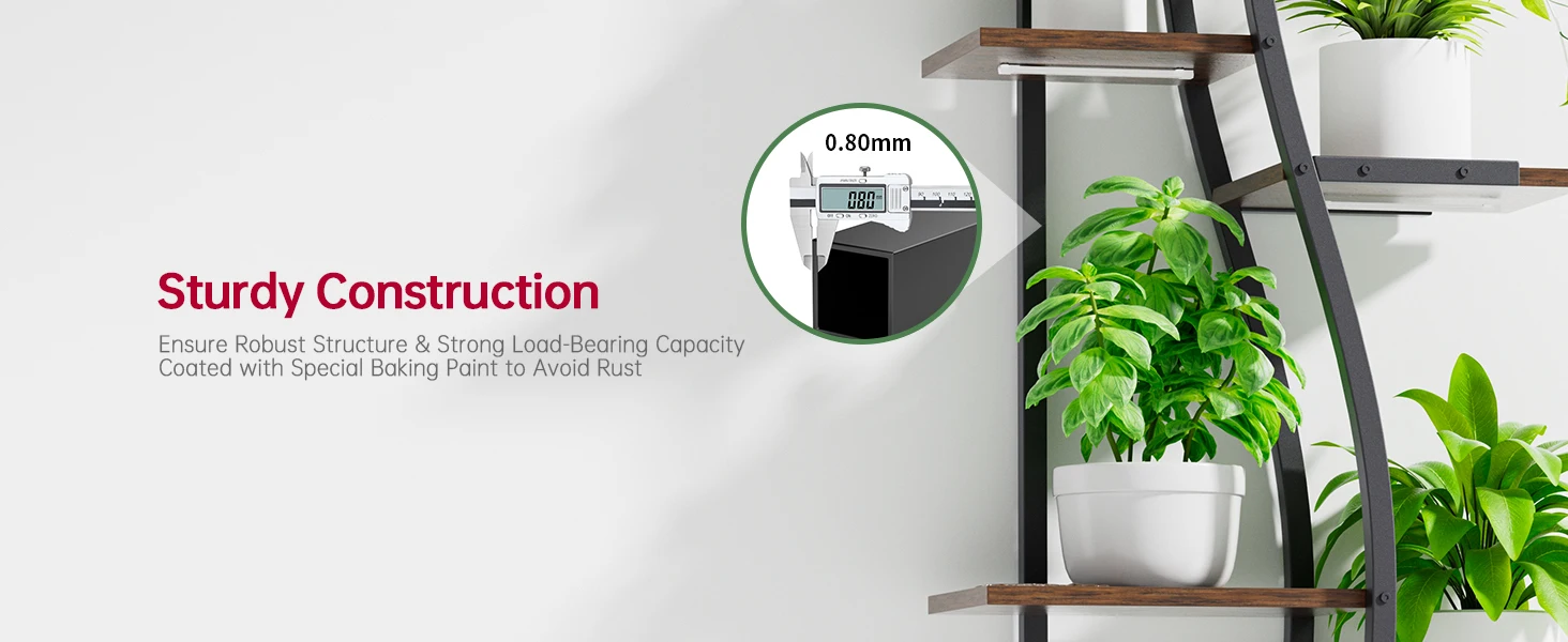 - 【High-Quality Material & Sturdiness】This plant holder is made with a sturdy 0.8mm thick iron pipe frame, with high-quality 15mm thick particleboard shelves, ensuring both durability and stability. The iron pipes are coated with special paint to prevent rust, while the shelves are treated with a water-resistant coating, allowing you to easily wipe away any water without damage.
