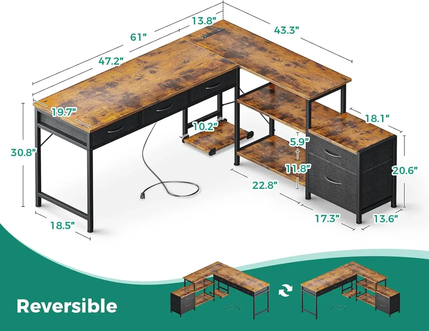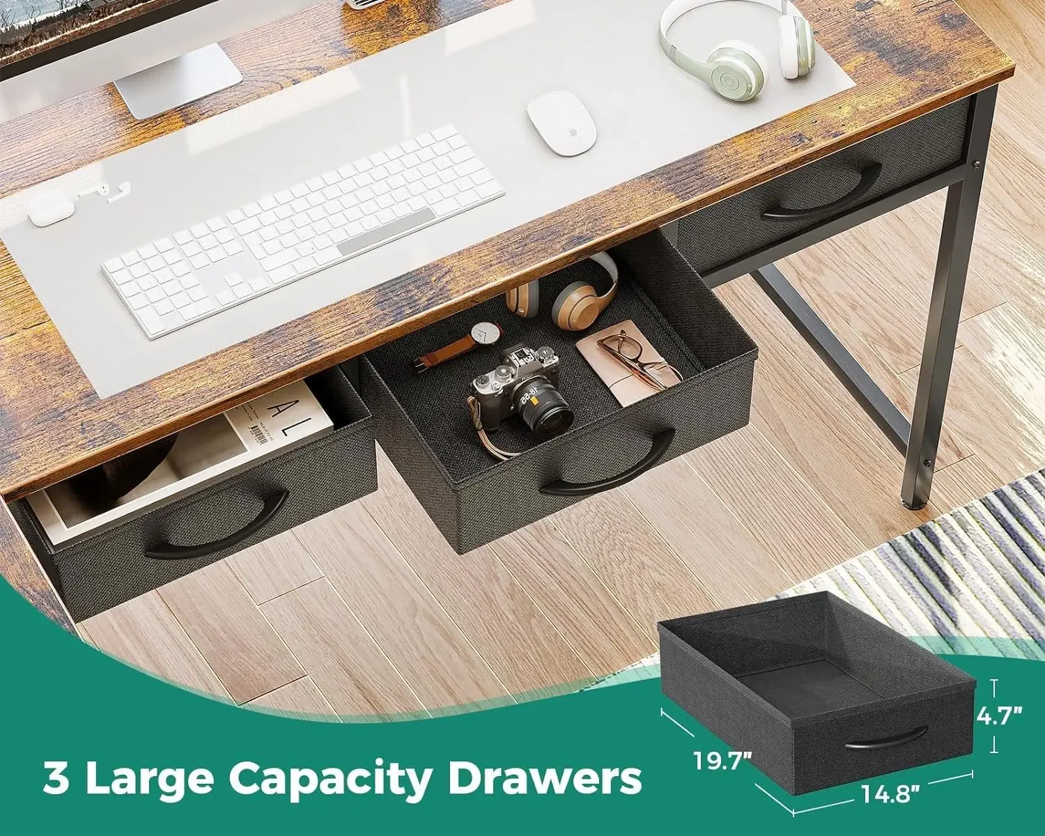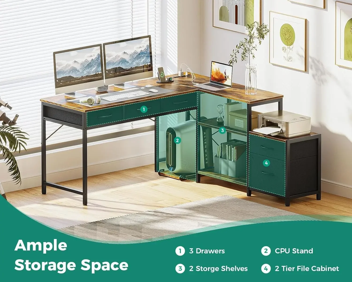 - Extra Large Storage Capacity Desk : 3 fabric drawers under the main desktop are convenient for everything you need for both work and study, giving you plenty of storage space. Another desktop with one drawer and one file cabinet underneath allows you to conveniently place and organize a variety of items. With this large storage computer desk, you can keep your desk tidy, whether it’s for documents, office or school supplies, gaming equipment, and more.