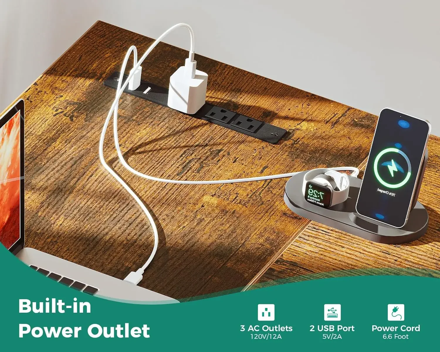 - 2 USB Charging Ports & 3 Power Outlets : This home office desk is equipped with 3 power outlets and 2 USB charging ports to quickly charge smartphones, Bluetooth, headphones, tablets, mobile power, and gaming devices. You can work enjoyably or play games easily with a full charge!