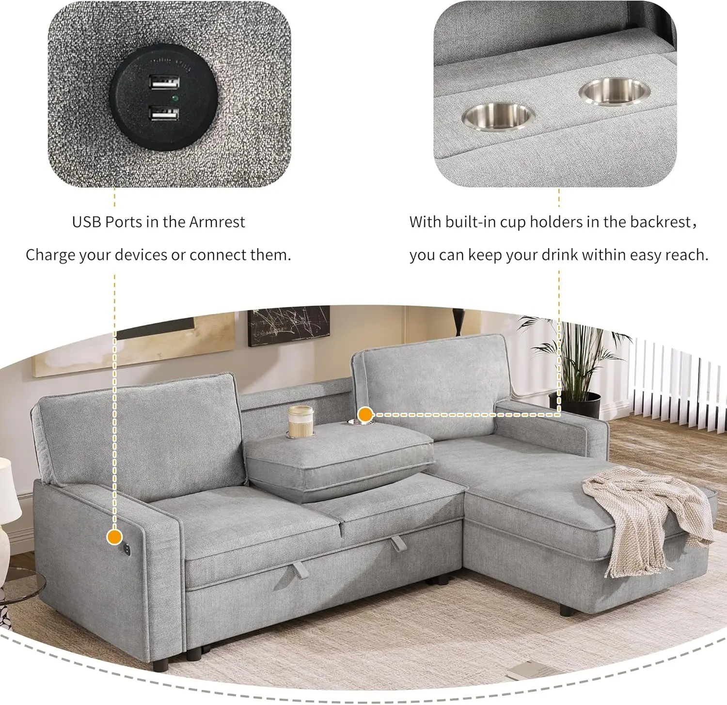 Buy L Shaped Sectional Sofa with Reversible Storage Chaise, Pull Out Sofa Bed with USB Ports and 2 Cup Holders for Living Room at Aliexpress for . Find more 1503, 37034009 and products. Enjoy ✓Free Shipping Worldwide! ✓Limited Time Sale ✓Easy Return.