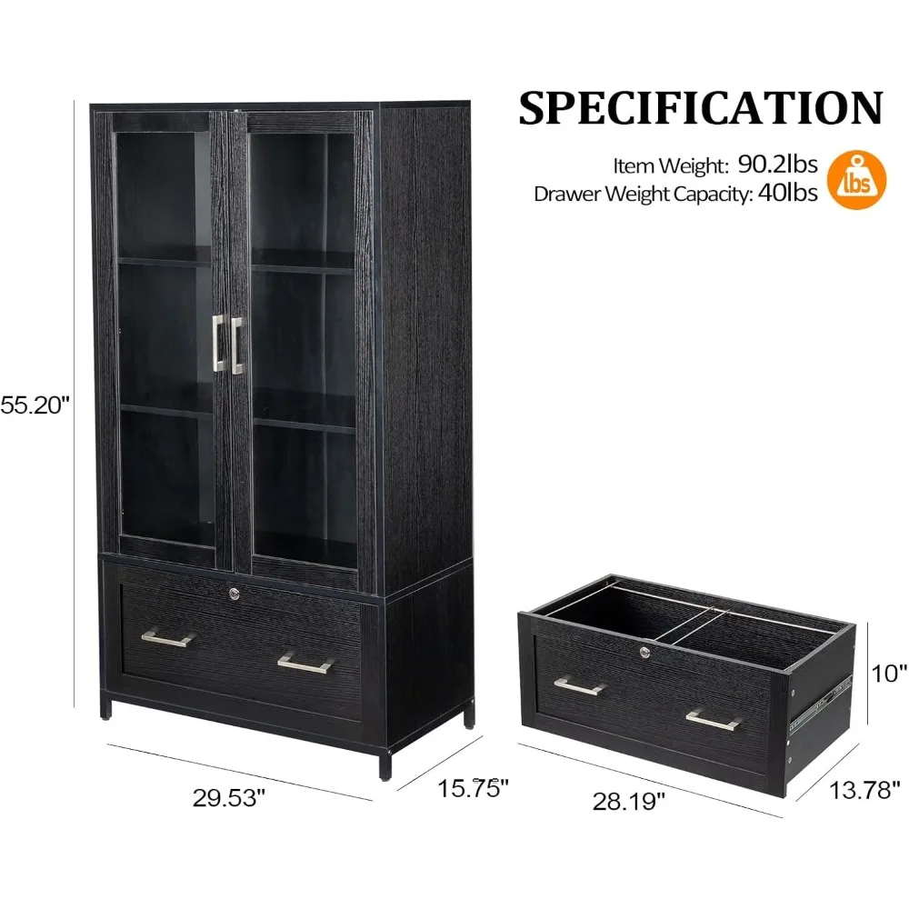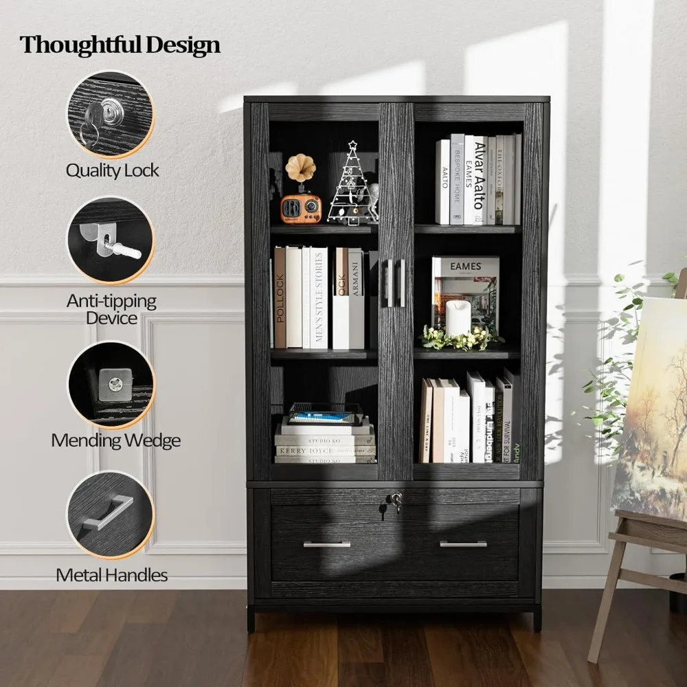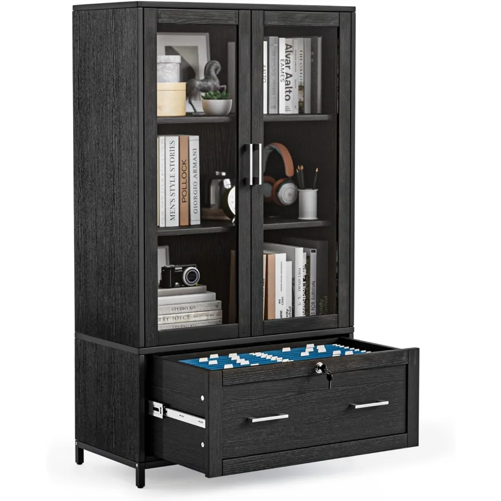 Lateral File Cabinet with Glass Doors and Locking Drawer, Hanging File Folders, Bookshelf with Adjustable Shelves, Office Cabine – AliExpress 1503
