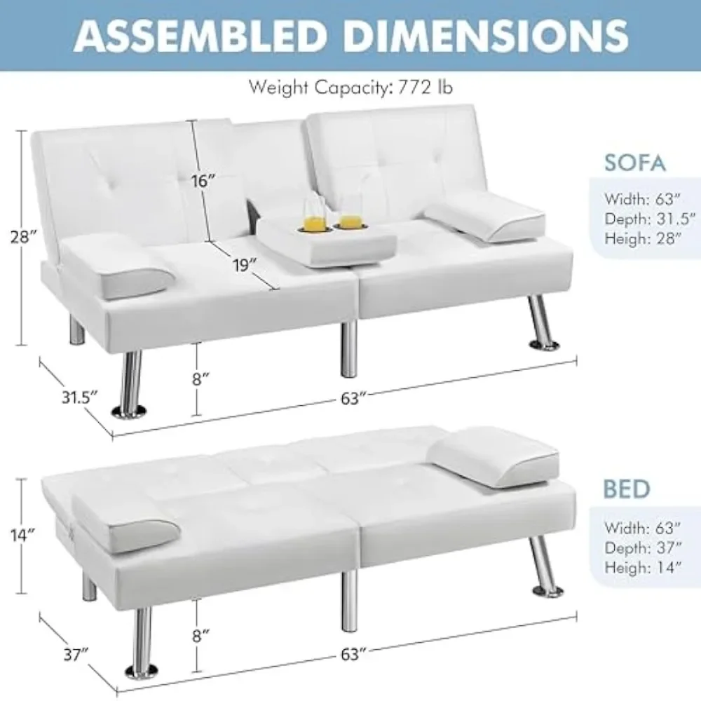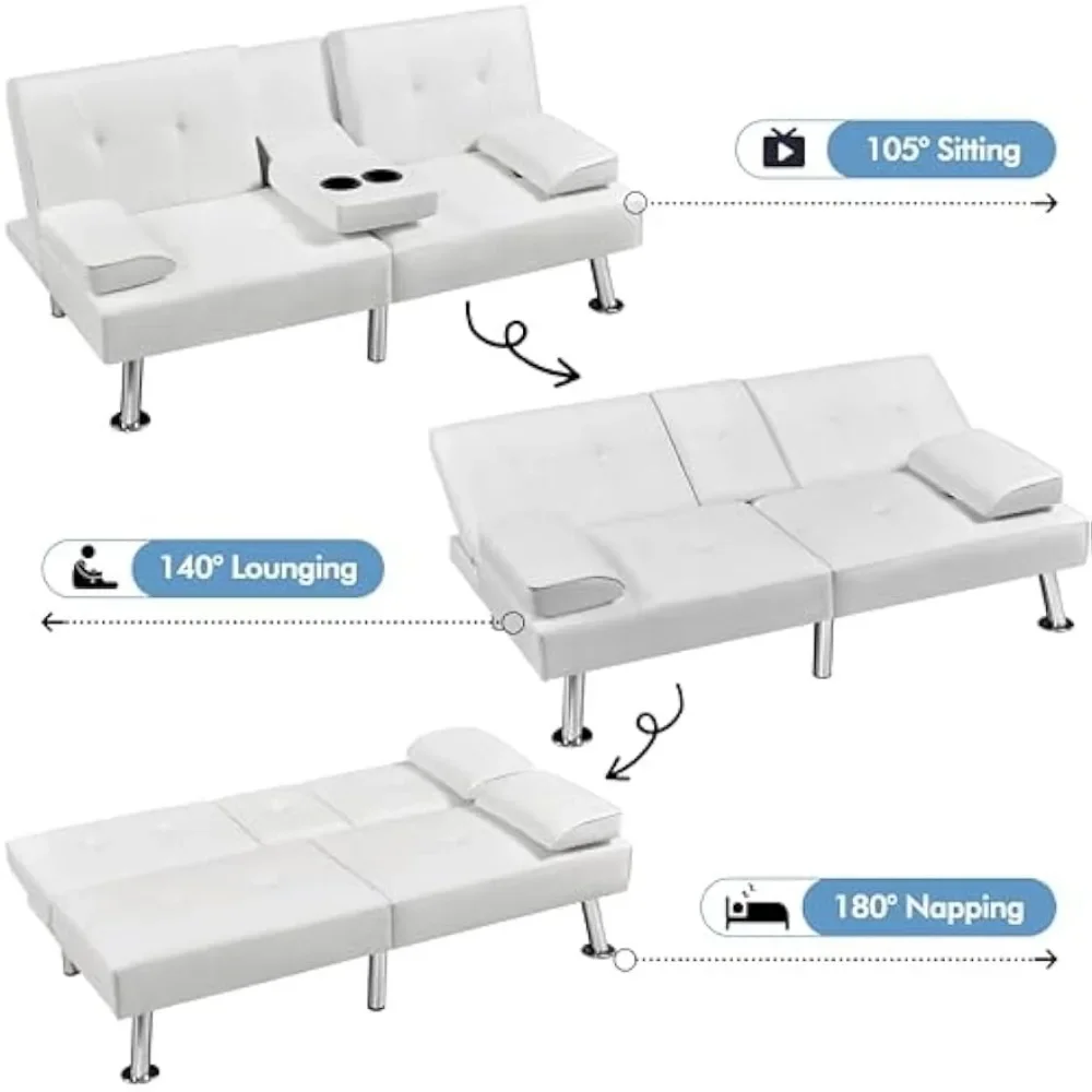 - 【Built For Comfort & Durability】Supported by Chrome-plated steel legs and an engineered wood frame, this convertible futon bed boasts a high capacity of up to 772 lb. Resilient foam cushions are upholstered in skin-friendly faux leather, offering extra comfort and easy cleaning.