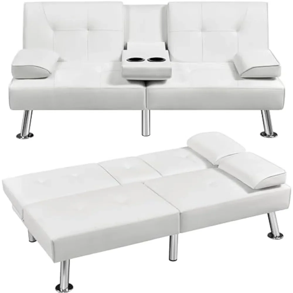 - 【Built For Comfort & Durability】Supported by Chrome-plated steel legs and an engineered wood frame, this convertible futon bed boasts a high capacity of up to 772 lb. Resilient foam cushions are upholstered in skin-friendly faux leather, offering extra comfort and easy cleaning.