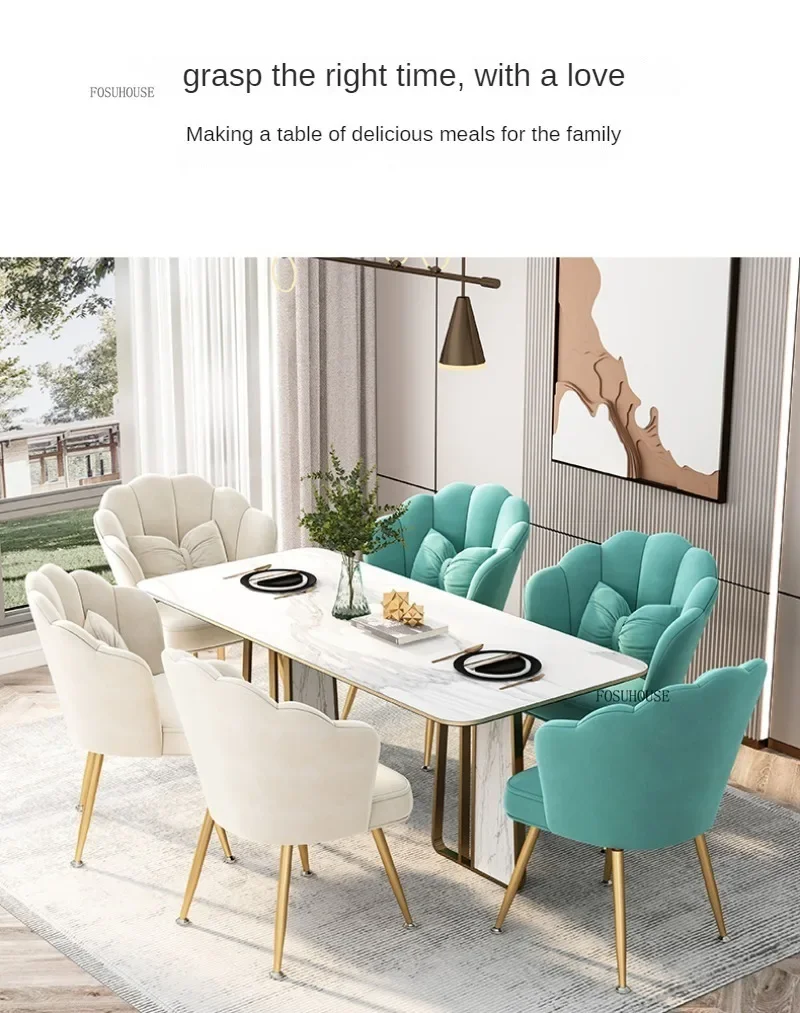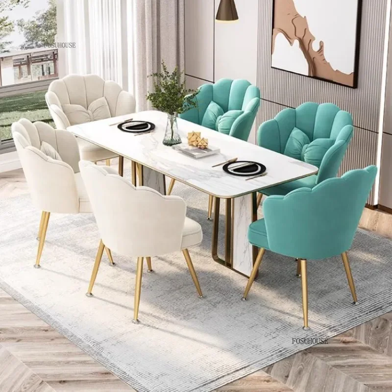 Luxury Dinner Lounge Dining Chairs Modern Dining Room Soft Comfort Backrest Chairs Waiting Gold Legs Nordic Home Furniture
