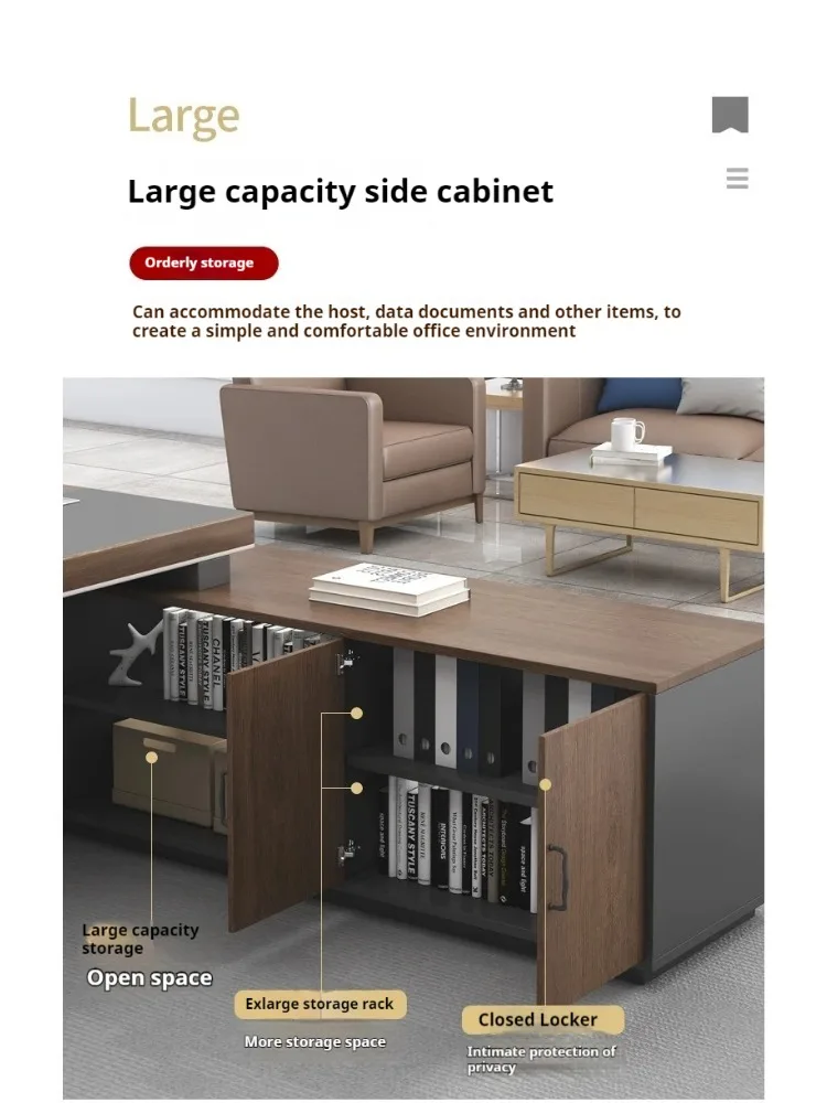Multifunctionality and practicality: The table surface is spacious enough to accommodate daily office supplies such as laptops, files, and telephones, ensuring a clean and orderly work area. At the same time, the structural design of the table is reasonable, making it easy to place various documents and stationery, and improving work efficiency.