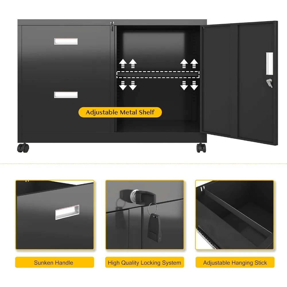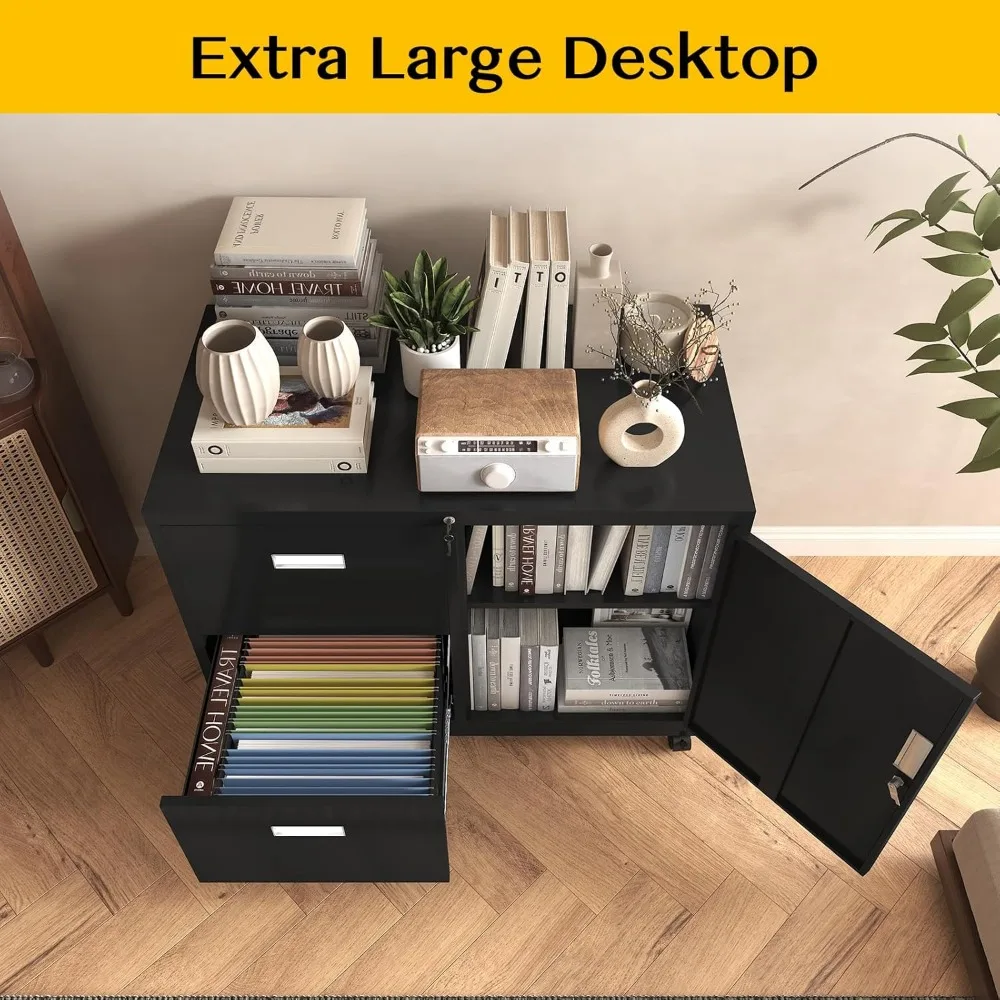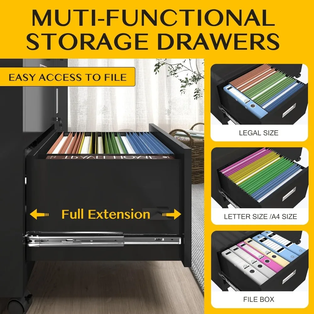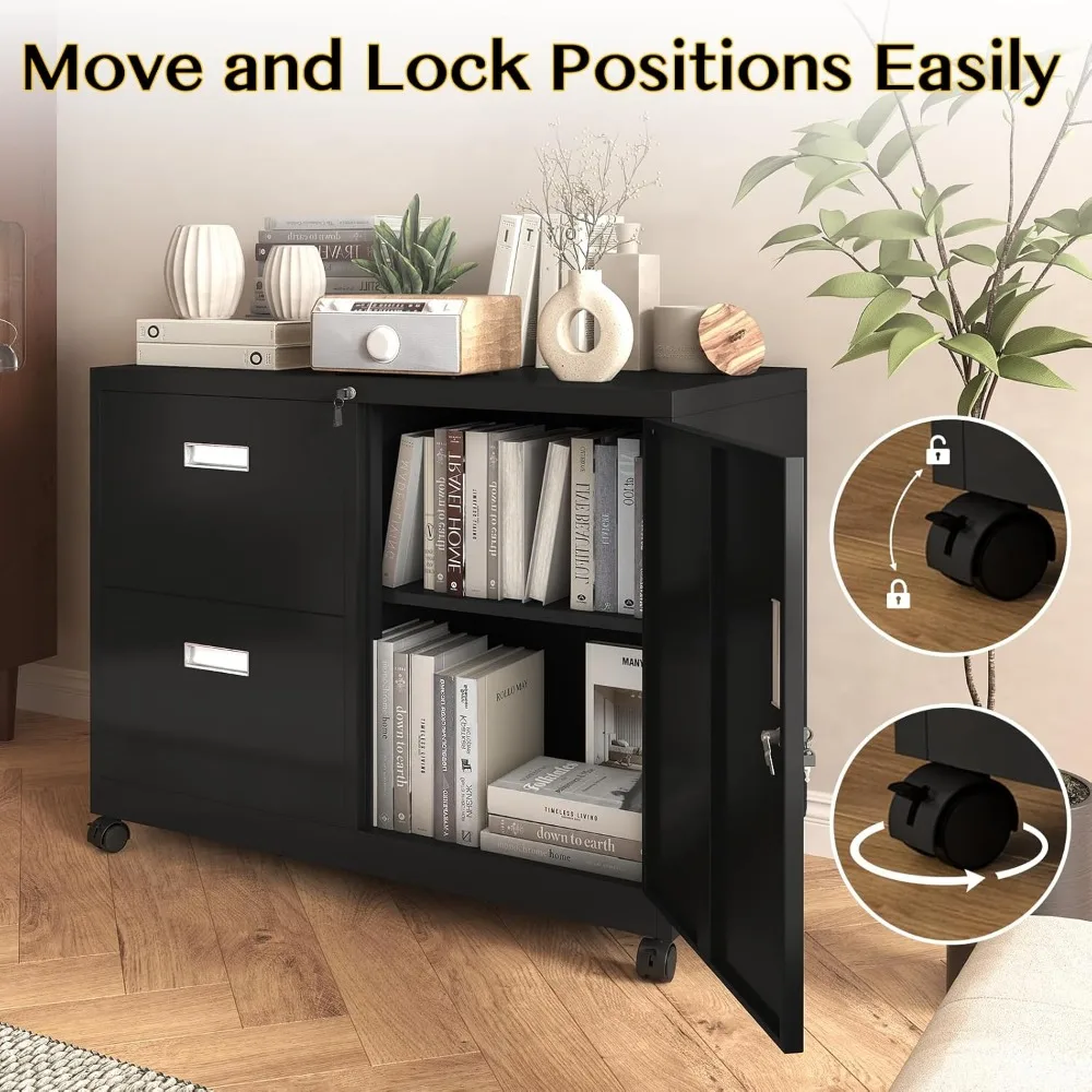 - LOCKABLE & MOVABLE:Locking locker ensures the privacy of your work and life; Drawer with full telescopic slides for easy access to all items; Embedded handle design makes it more convenient to open the drawer without hurting your fingers; Printer bracket has 4 wheels, which have built-in brakes to ensure that the cabinets can be moved around and fixed in position at will.