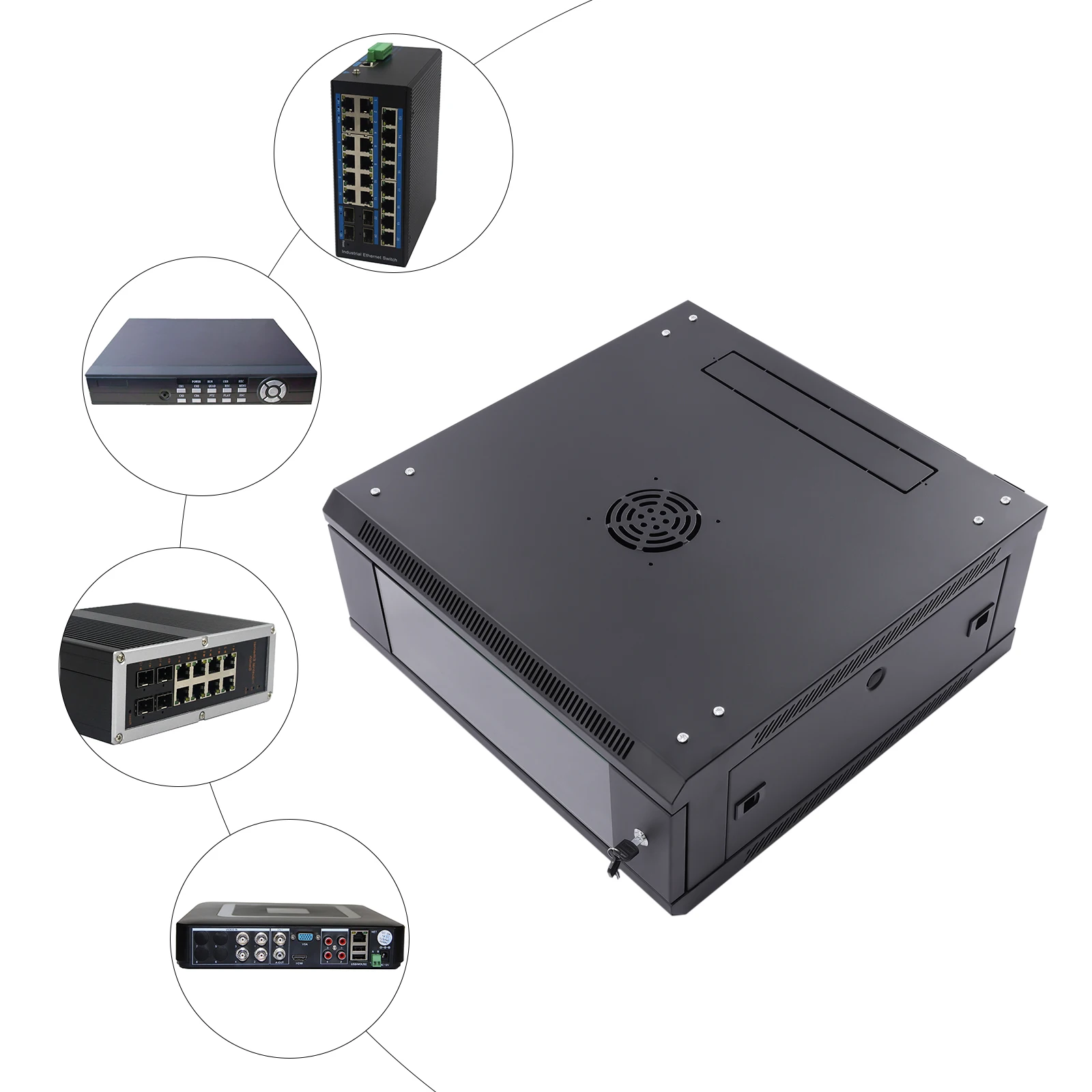 This network wall cabinet is suitable for monitoring rooms, data rooms, TV stations, control centers and other places to store routers, optical modems, switches, hard disk recorders and other electronic equipment.