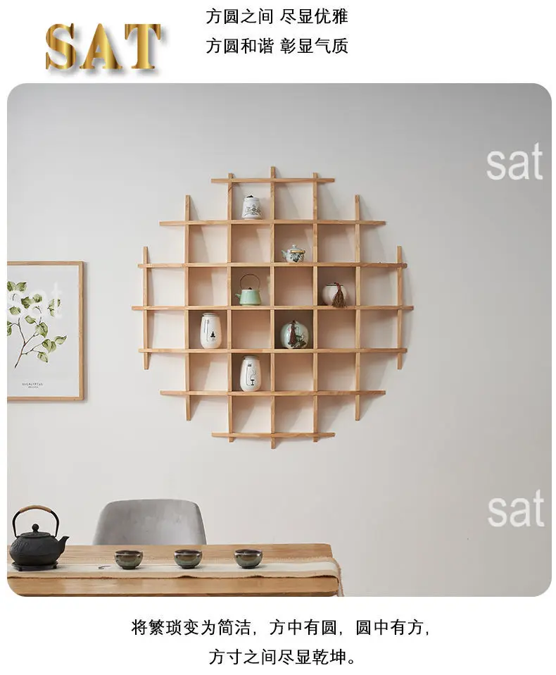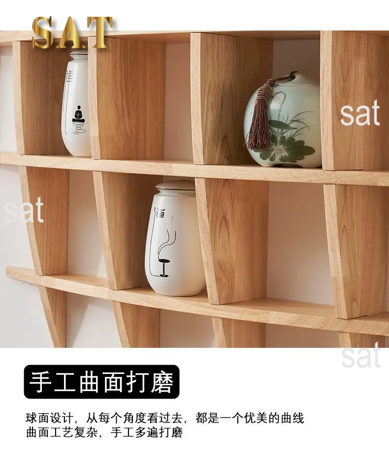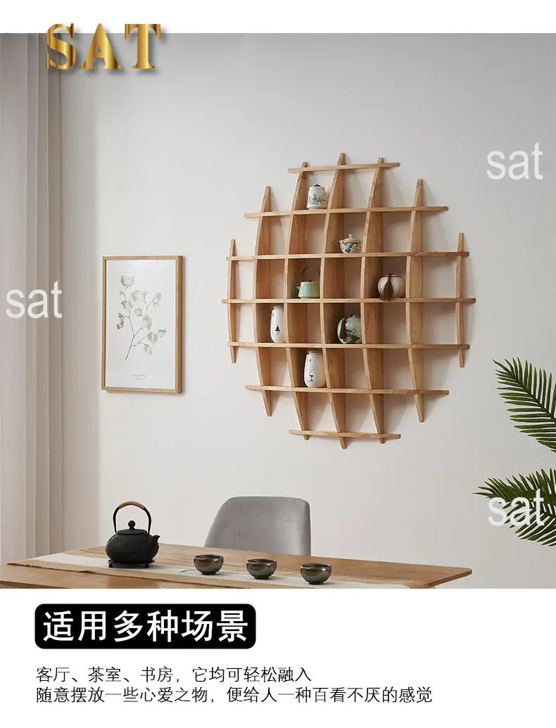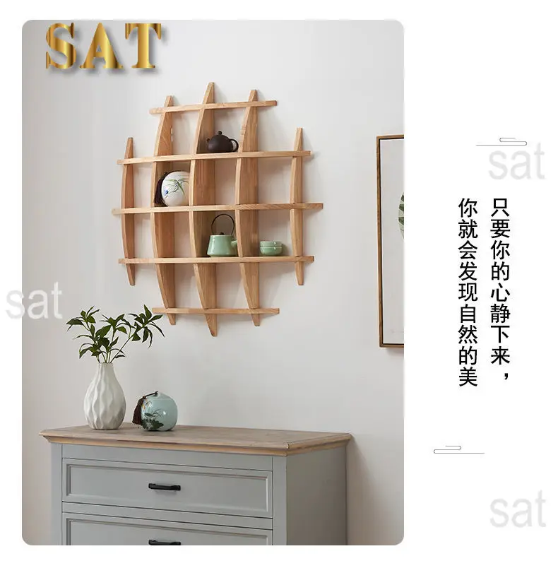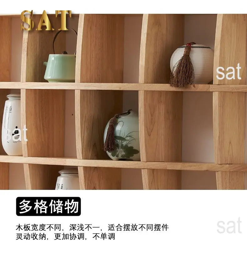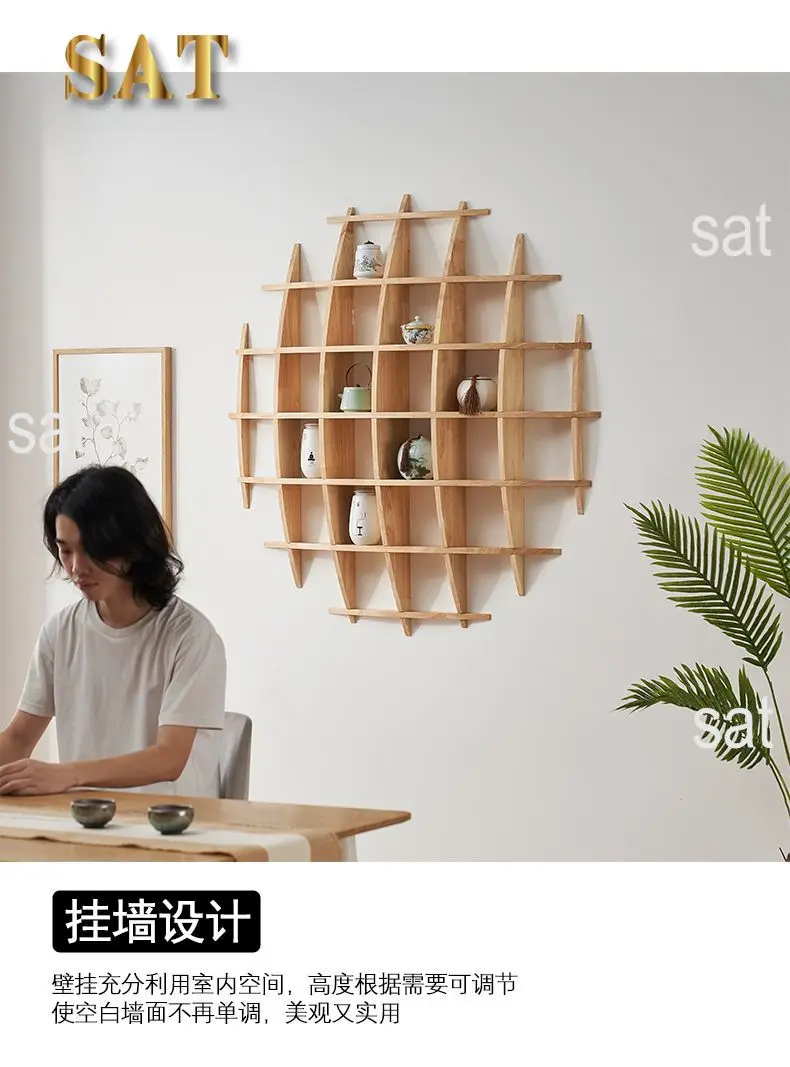 Modern minimalist wall-mounted solid wood Chinese-style wall-mounted living room decoration background teacup tea set rack shelf - AliExpress 13