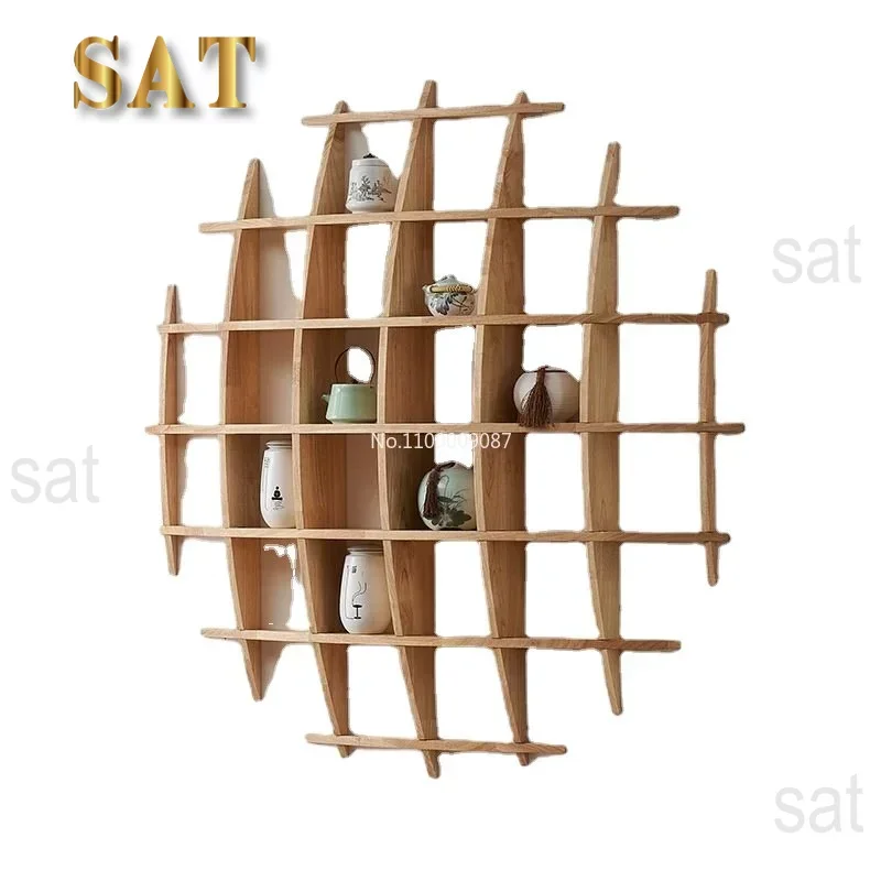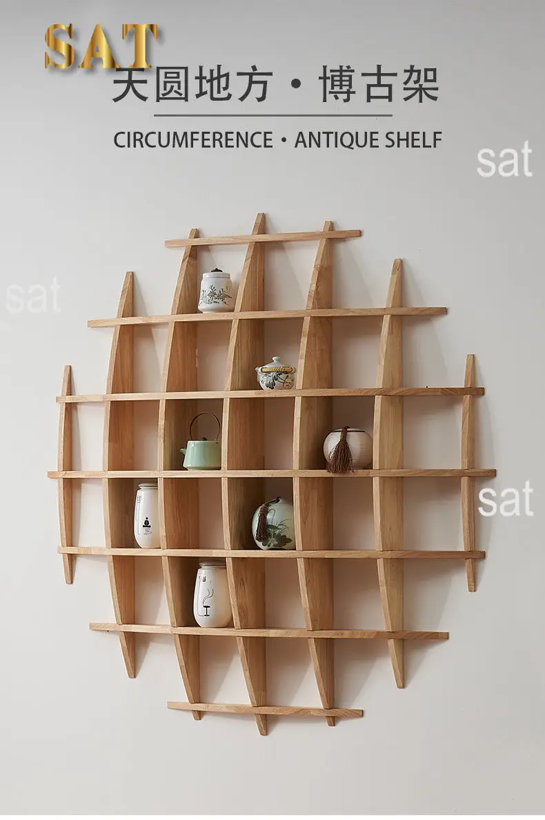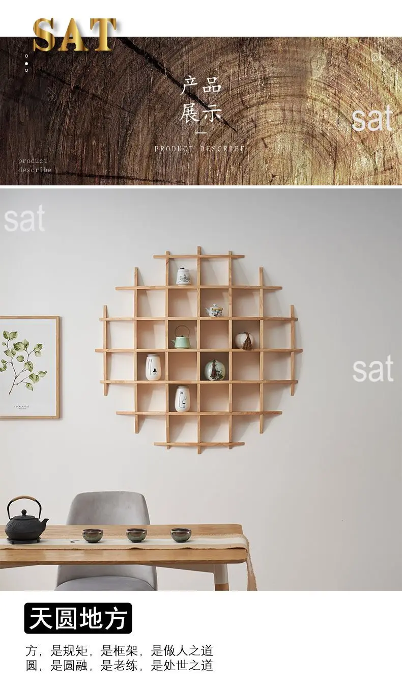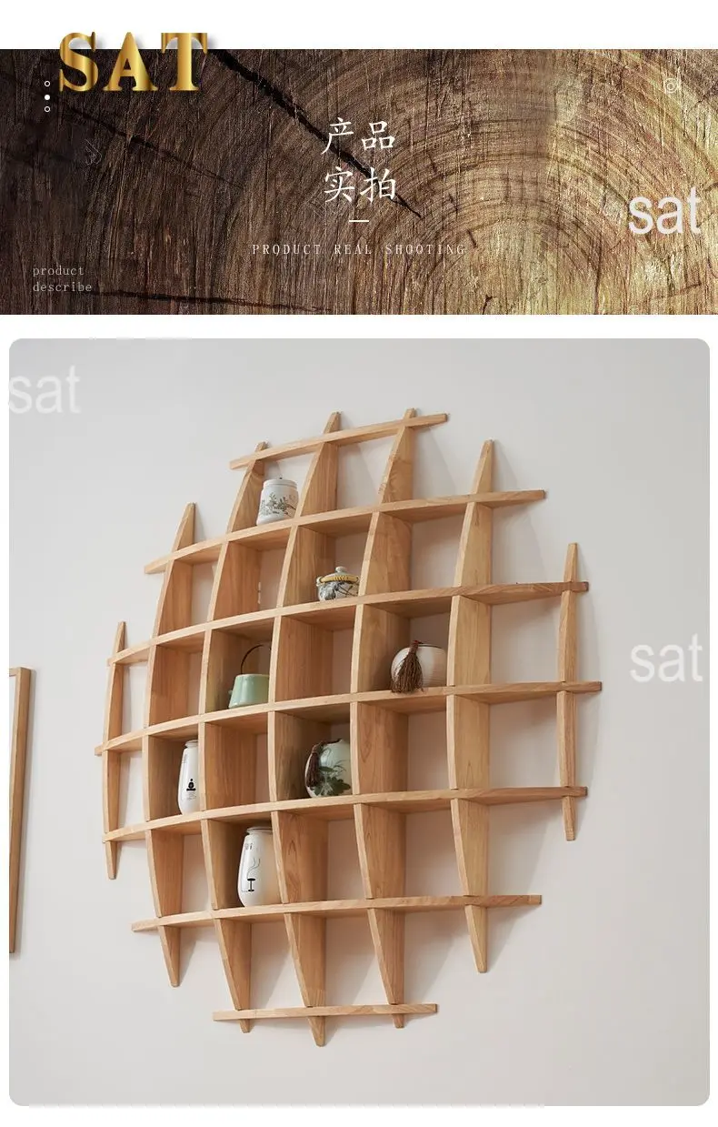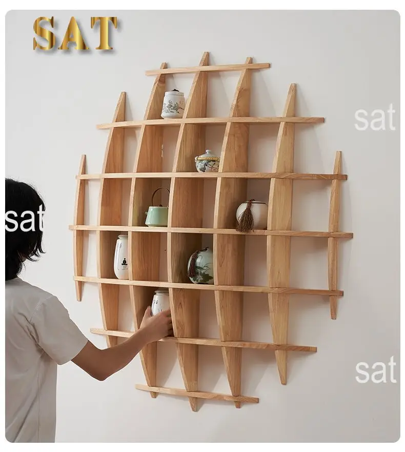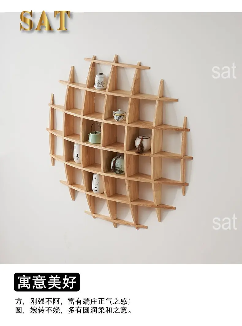 Modern minimalist wall-mounted solid wood Chinese-style wall-mounted living room decoration background teacup tea set rack shelf - AliExpress 13