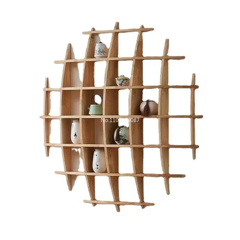 Modern minimalist wall-mounted solid wood Chinese-style wall-mounted living room decoration background teacup tea set rack shelf - AliExpress 13