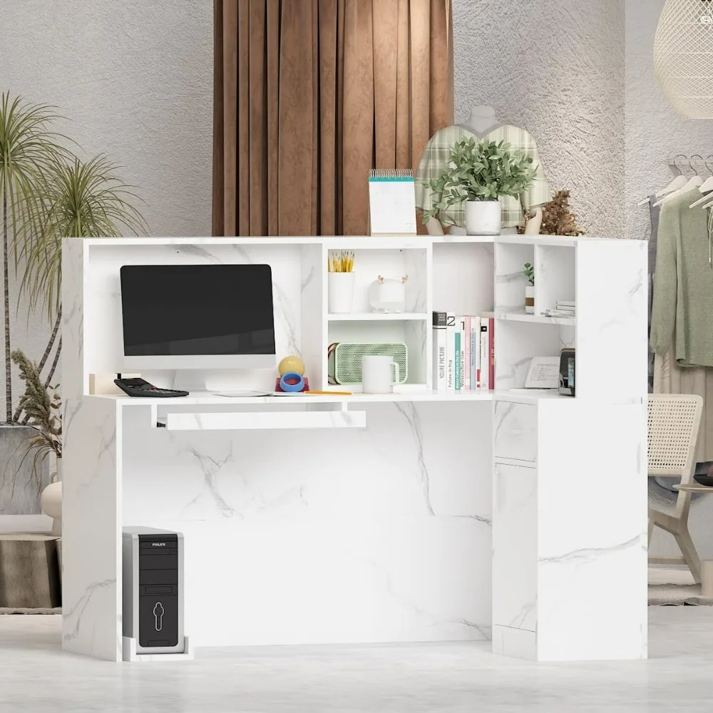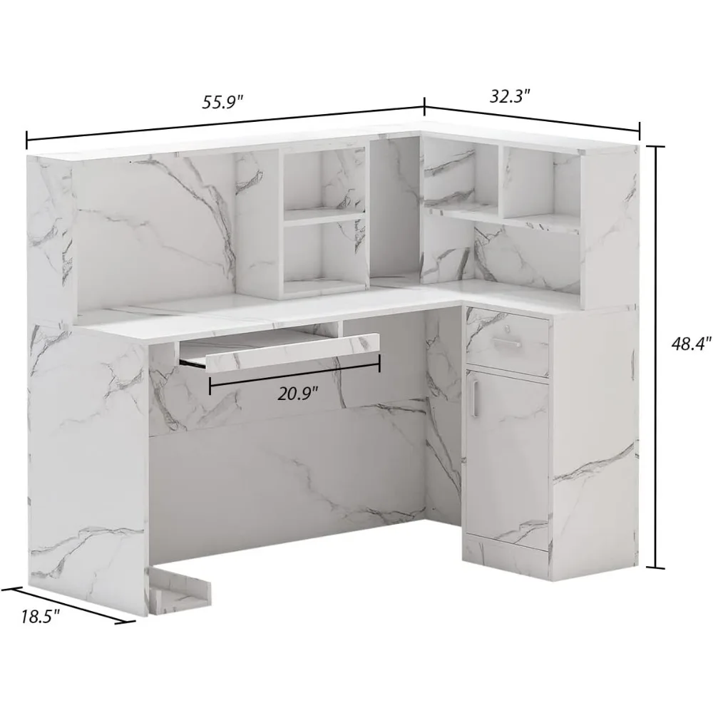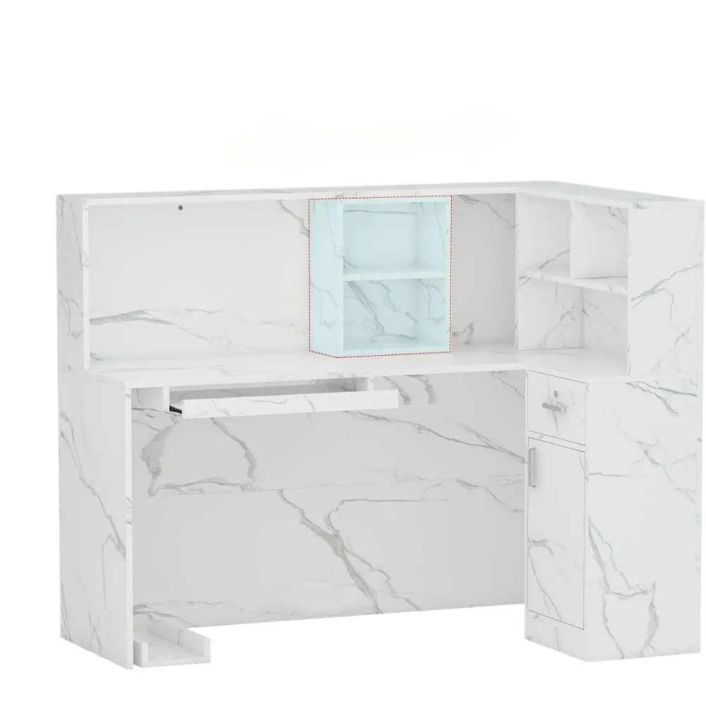 - Ample Storage Space – This recetion desk offers spacious shelves above the tabletop, allows improve your place tidiness. There has an adjustable component to keep your office stuff easy to access. Store your files and belongings in loackable drawers and the cabinet