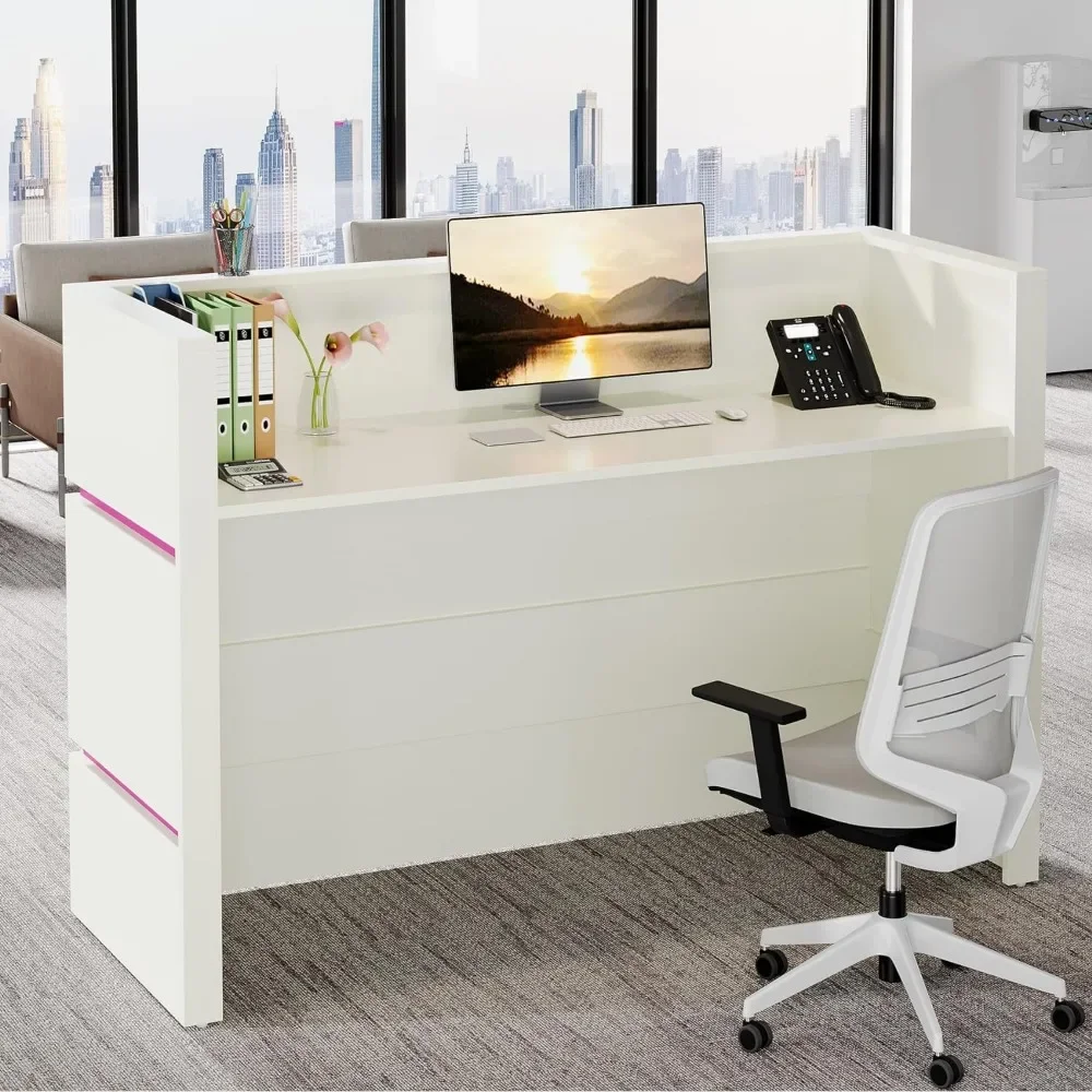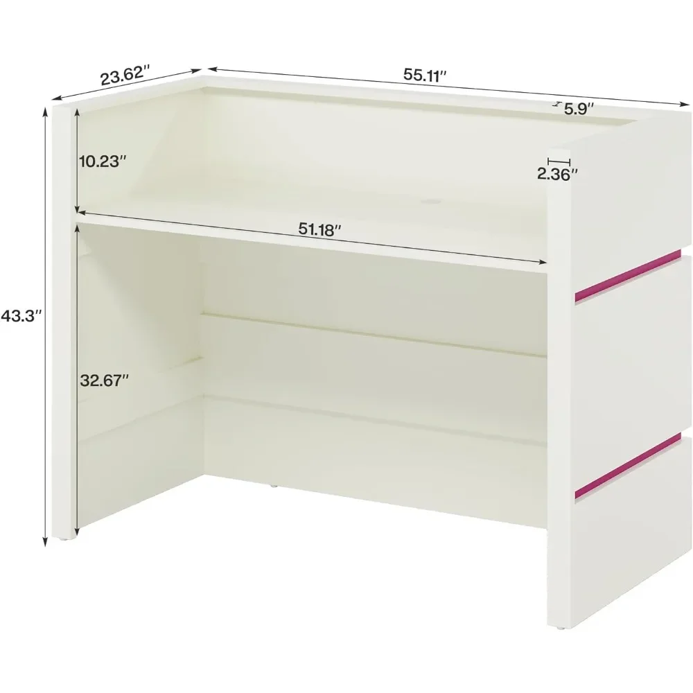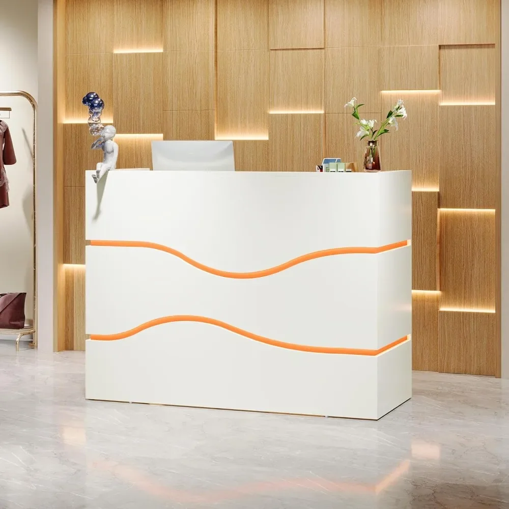 - [7-Color LED Light Strips]: The different light colors can alter the atmosphere of your reception area, creating varying moods and atmospheres for visitors. LED light strips not only consume less energy, but also have a long lifespan, making the desk a focal point in your reception area.