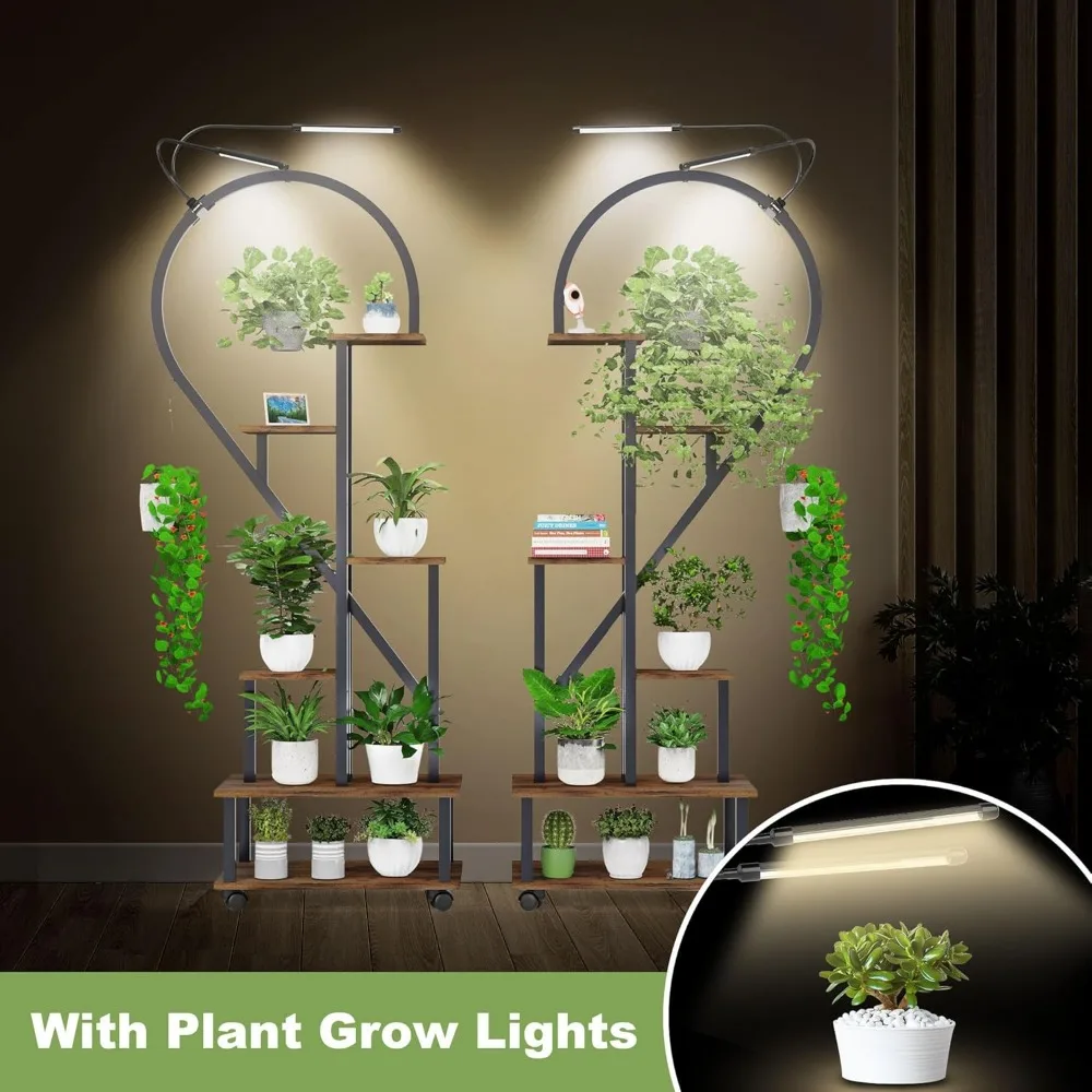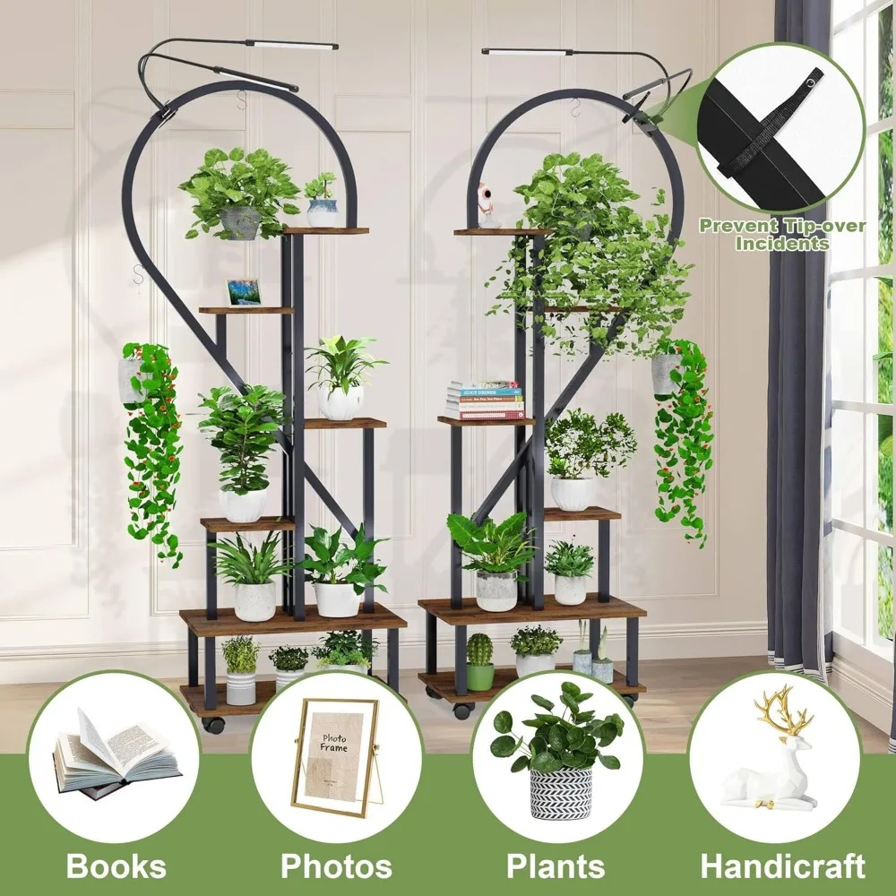 - 6 Tier Indoor Plant Stand: The upgraded indoor heart-shaped metal plant stand has 6 levels and comes with 8 detachable wheels, the capacity is about 20 pots and 4 hooks on the side of the stand that allows the placement of hanging plants, which are designed to allow maximum sunlight for each plant and provide you with plenty of storage and display positions, making your space look more tidy.