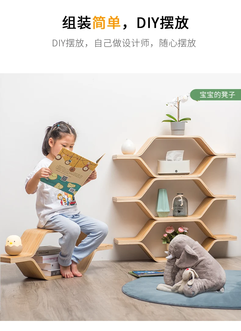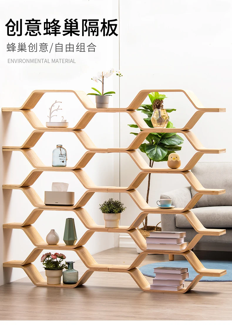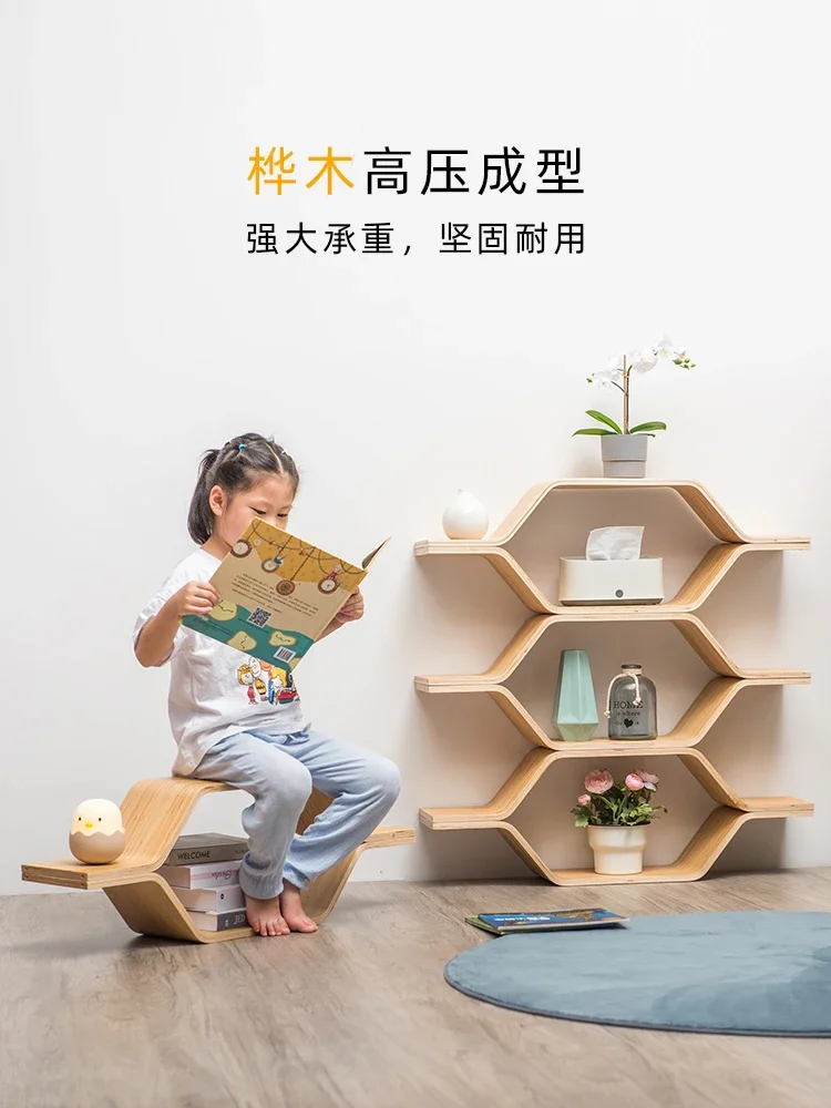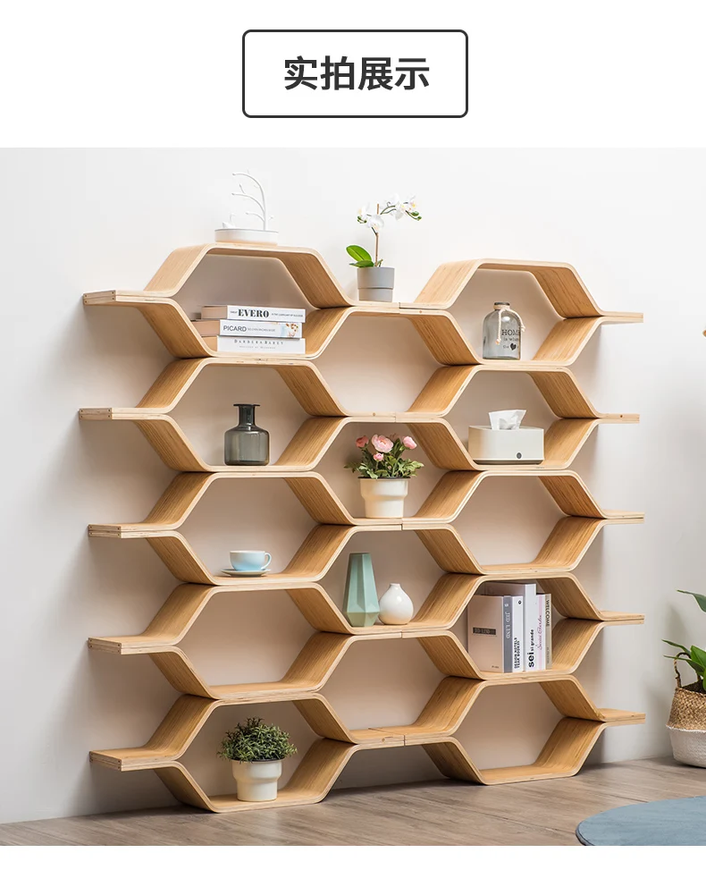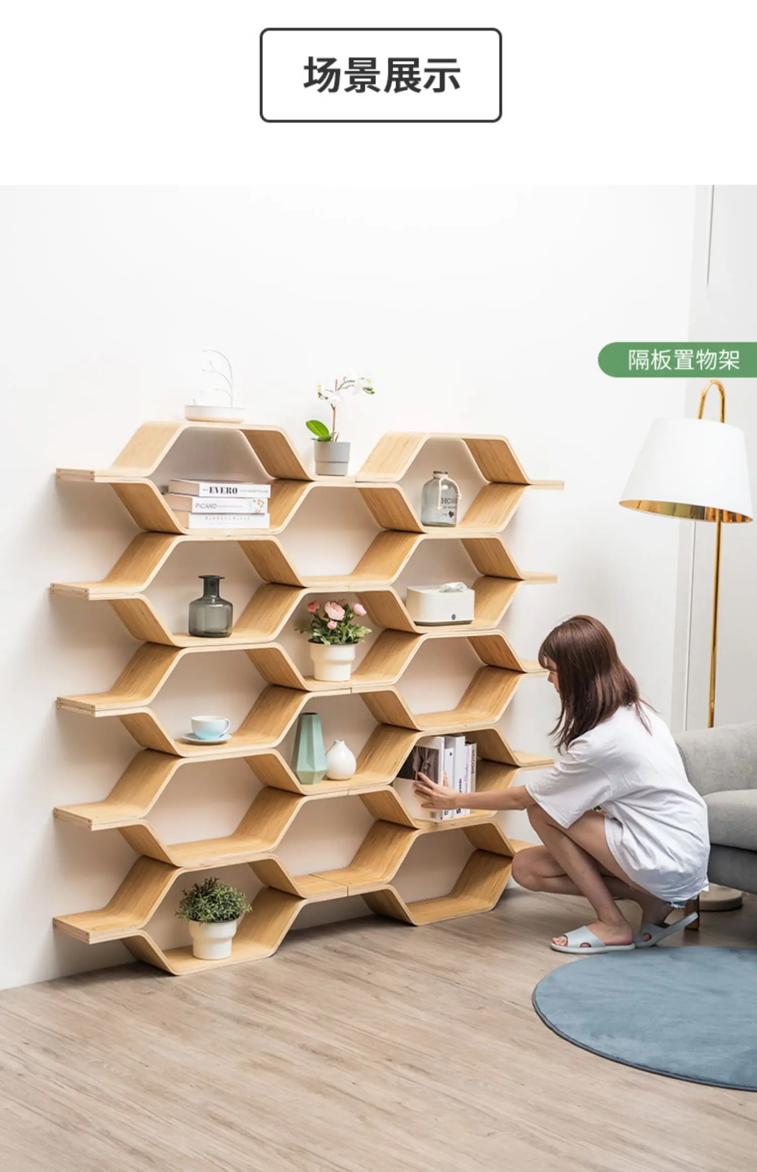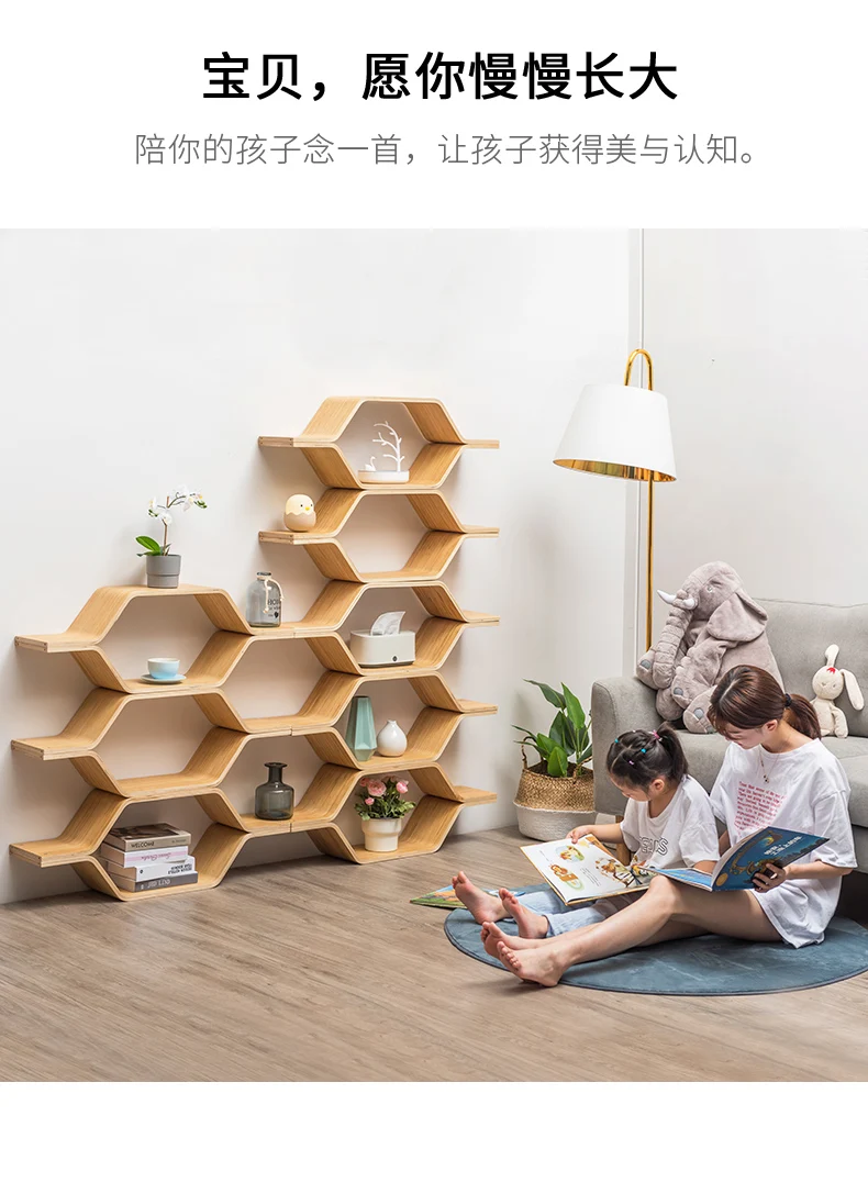 Splicing bookcase, floor storage shelf, wall partition, solid wood children's bookcase, honeycomb space saving bookcase - AliExpress 15