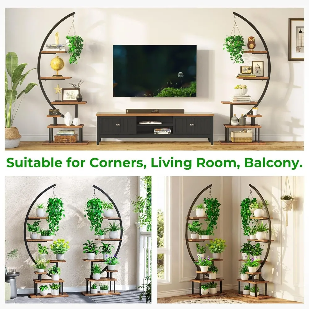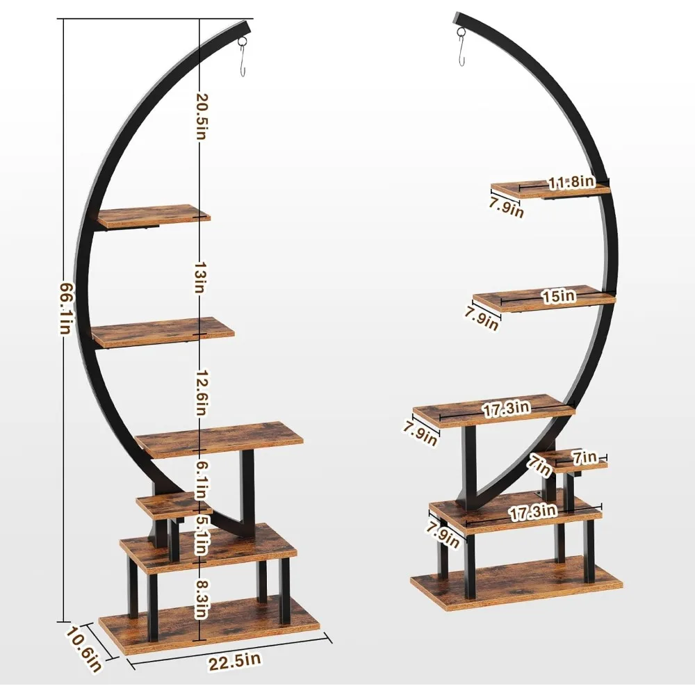 - 7 Tiered Tall Plant Stand: plant stand indoor has 7 tiers, 12 pot holders and two S-shaped hooks, which provides ample storage and display space for multiple plants. Furthermore, this indoor plant stand can also be used for displaying decorative items, arranging books or other small items. It will fit perfectly with your living room, office, patio, balcony or any of your meditation area.