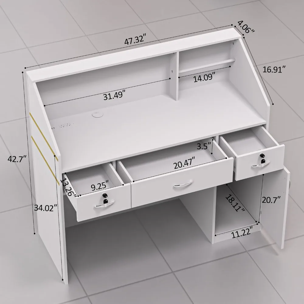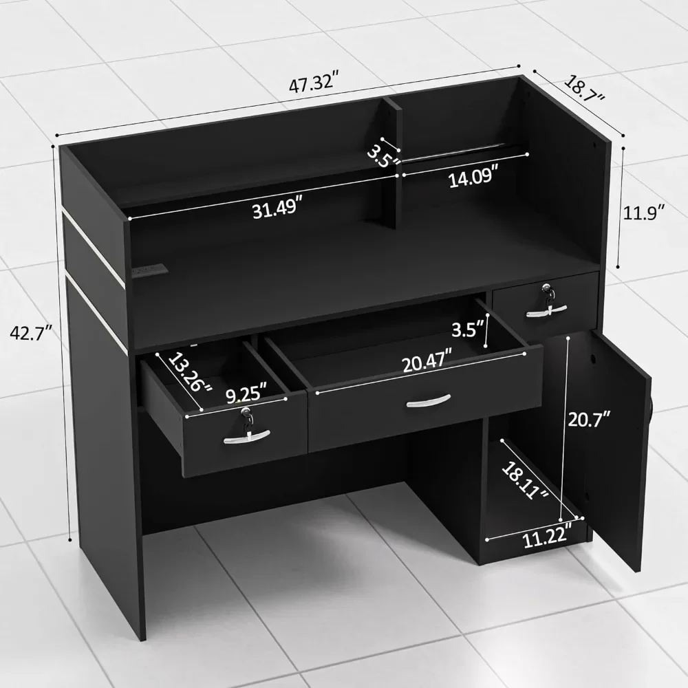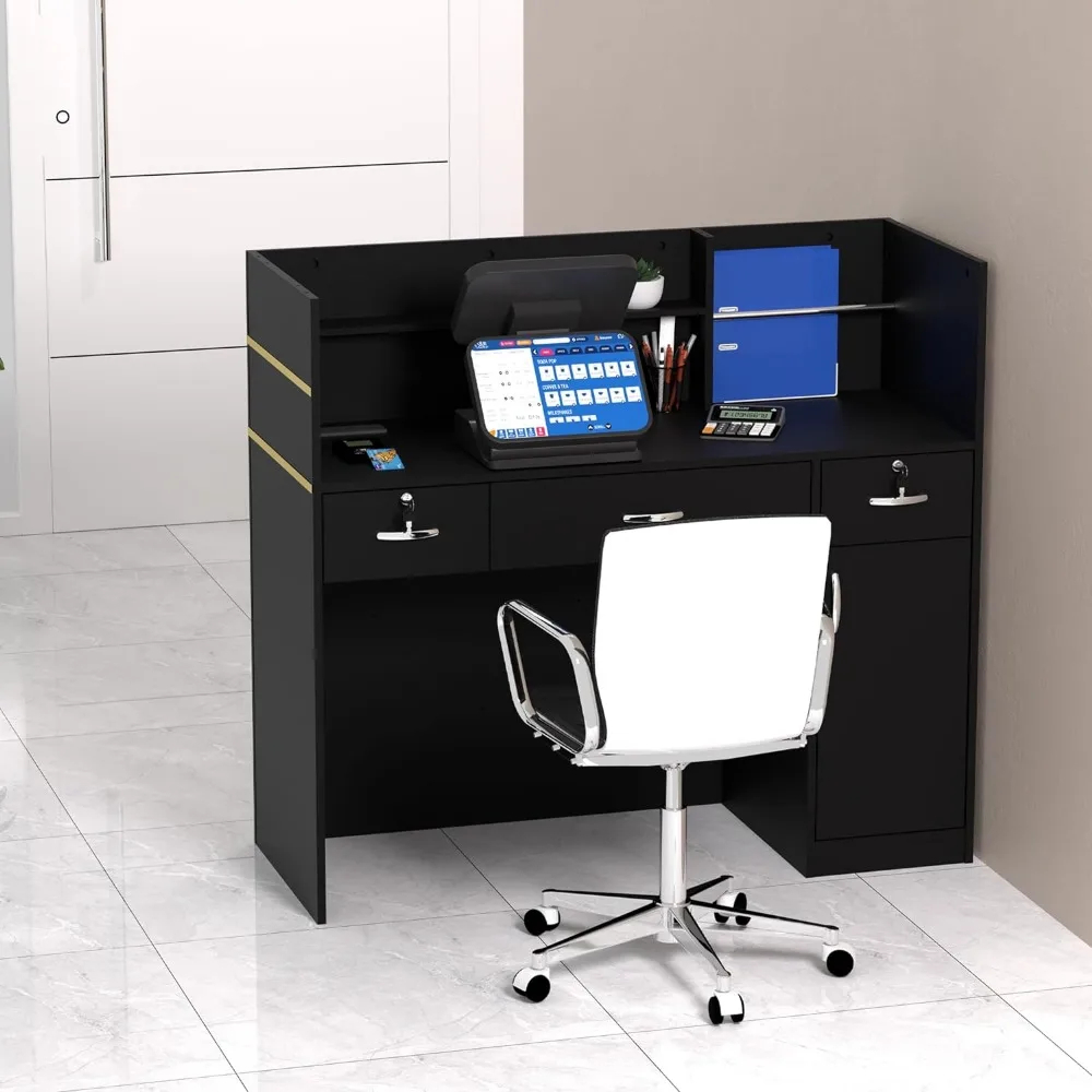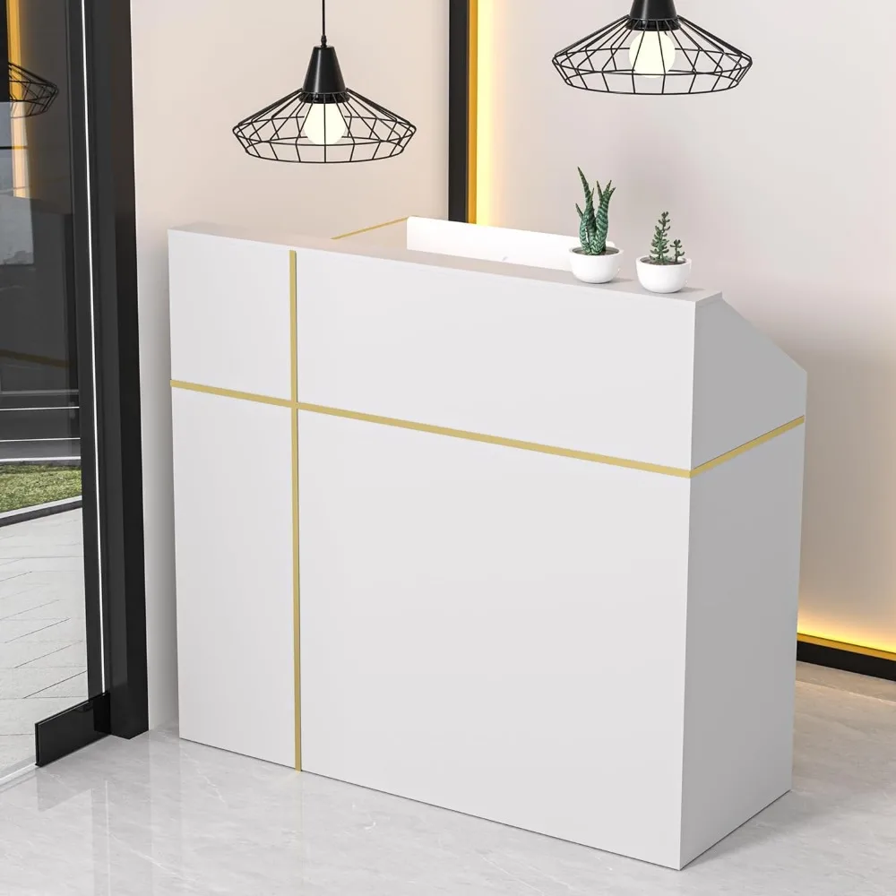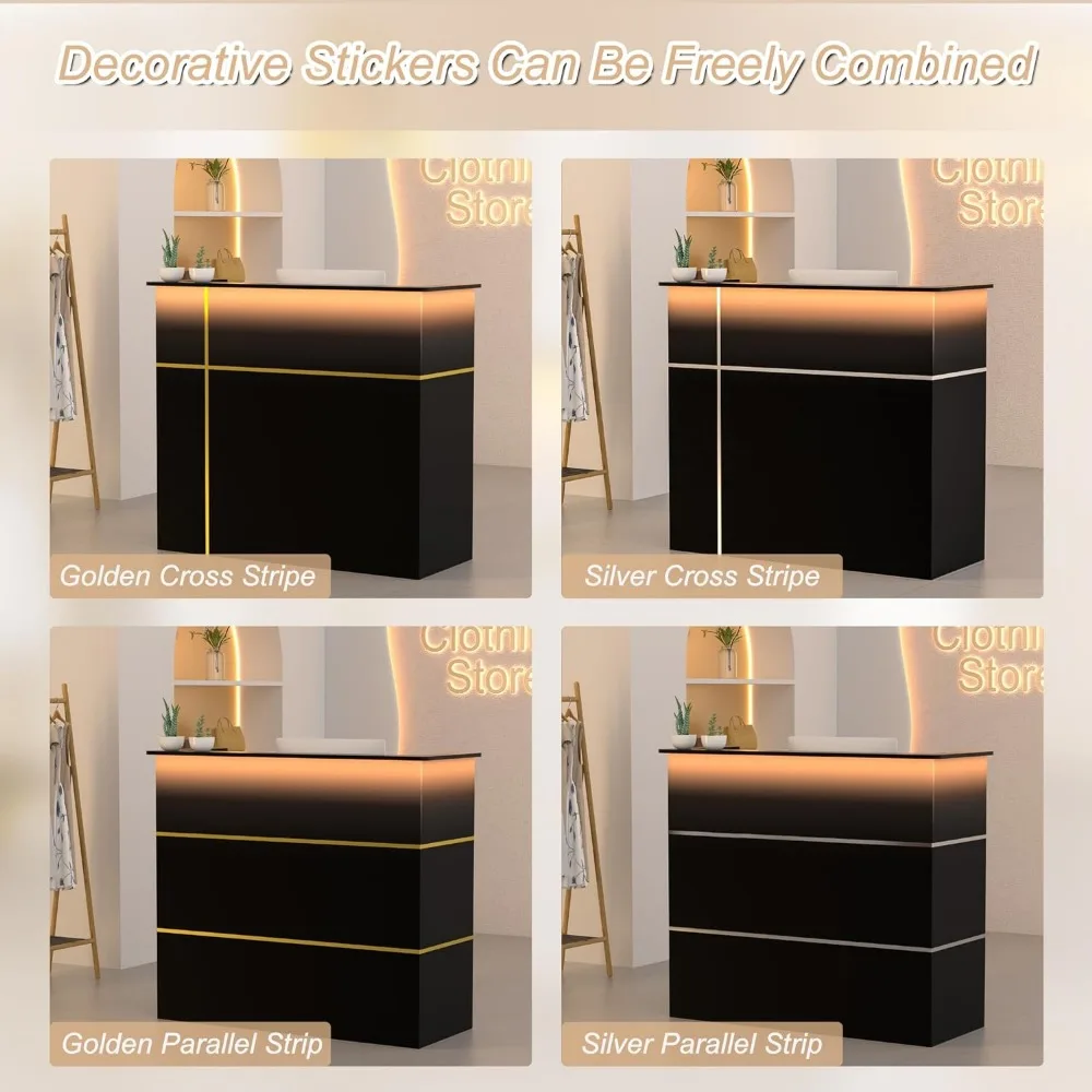 - DIY DESIGN: Our Front Desk comes with two colors of metallic decals, so you can freely combine and decorate the table to add an eye-catching style to it.Modern and minimalist appearance, add your creative decorations to show a hospitable atmosphere and make your reception area attract customers’ attention and interest.