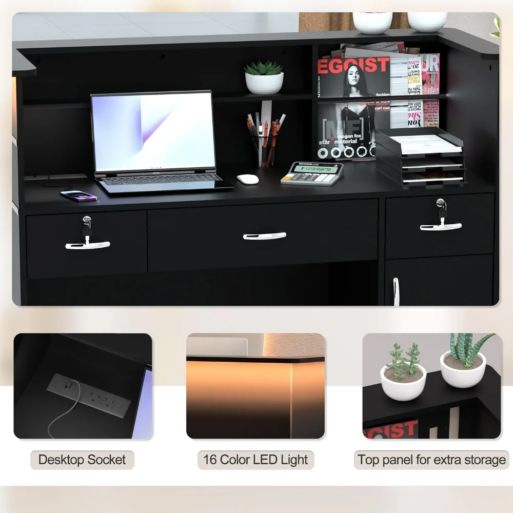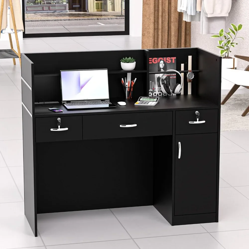 - RELIABLE CONSTRUCTION: All panels of this Reception Desk with Counter are P2 solid particle board, the veneer and edges of the top are easy to clean, just wipe it gently with a damp cloth. High-quality connecting parts provide a solid connection, making the table strong and durable. Ideal for lobbies, receptions, home offices, retail stores, coffee shops, salons, bars, tattoo parlors and more!