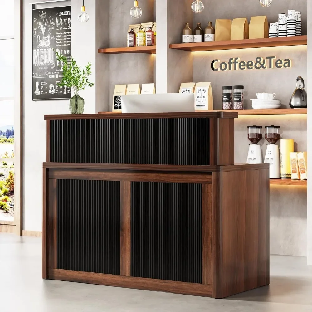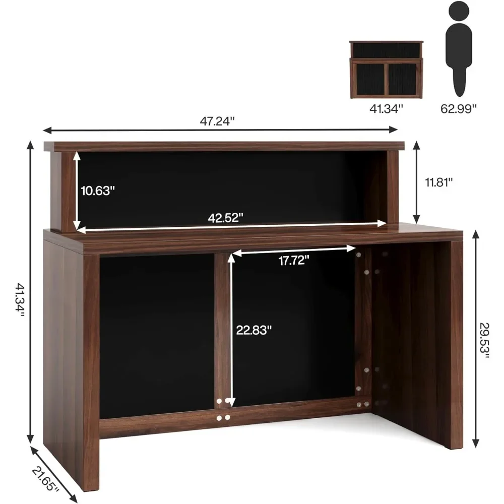- 【Industrial Reception Desk】With its smooth lines and rustic color combination, this receptionist table adds a touch of elegance to your reception area. It fits into any décor from modern to farmhouse. Undoubtedly, this chic reception desk with counter will leave a remarkable impression on your clientele.
