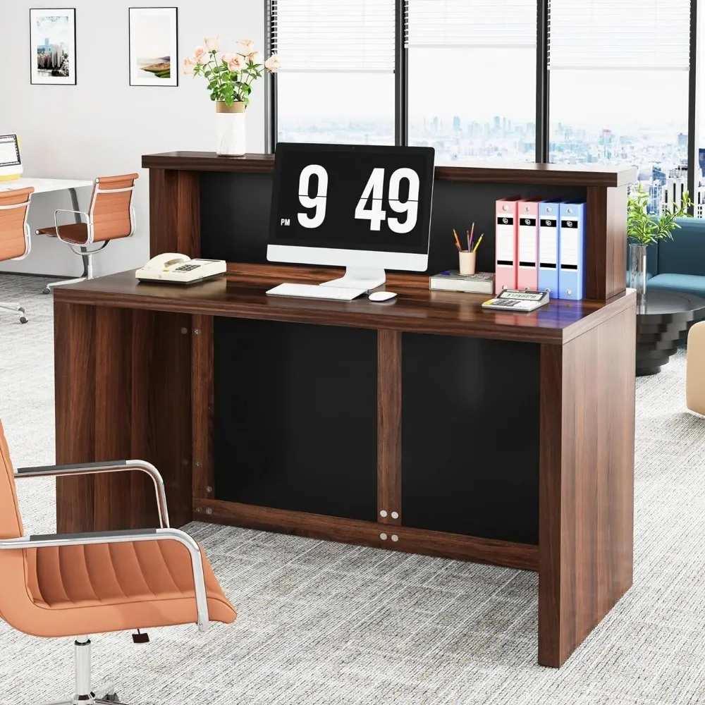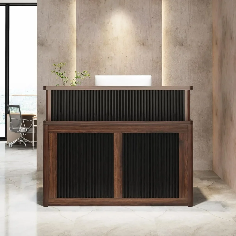 - 【Robust Sturdy Construction】Made from high-quality thickened MDF with a brown finish which is water and scratch resistant, the reception desk is designed to withstand day-to-day activities, ensuring longevity and reliability. Moreover, it’s equipped with 4 adjustable foot pads to prevent wobbling on uneven floors and significantly improve stability.