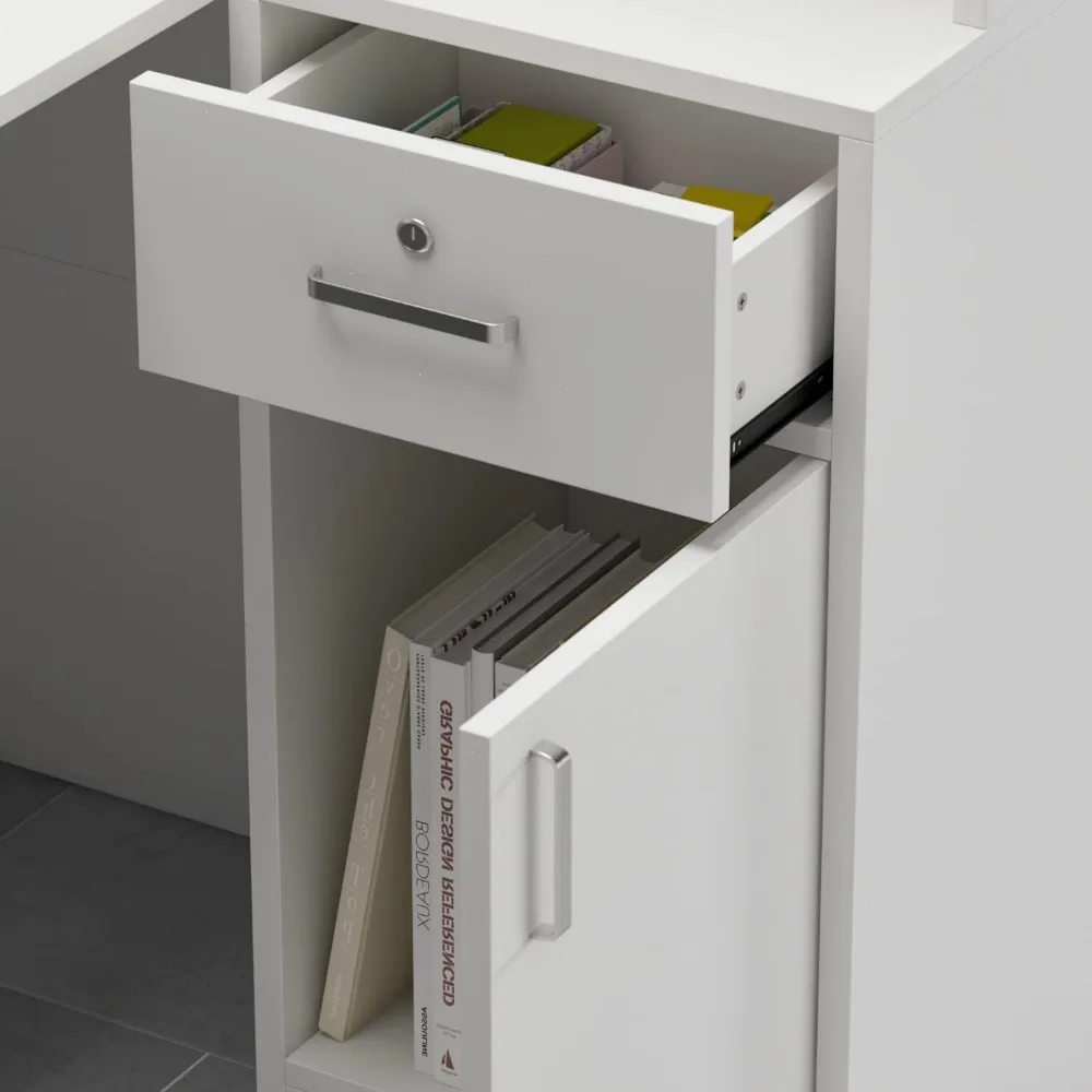- Thoughtful Design – We take your privacy and property security very seriously. The lockable drawer and L-shaped high side panels provide ample space for privacy. The parallel decor line on the front of the reception desk are stickers, you can create your own favor design with them
