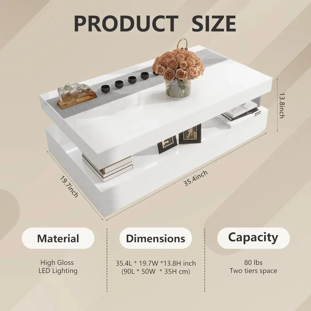 - 【MULTI-COLOR RGB LIGHT】LED Modern white coffee table with multi-color RGB LED light, 16 color variations and 4 adjustable light effects, controlled by remote control. Give you a comfortable life experience