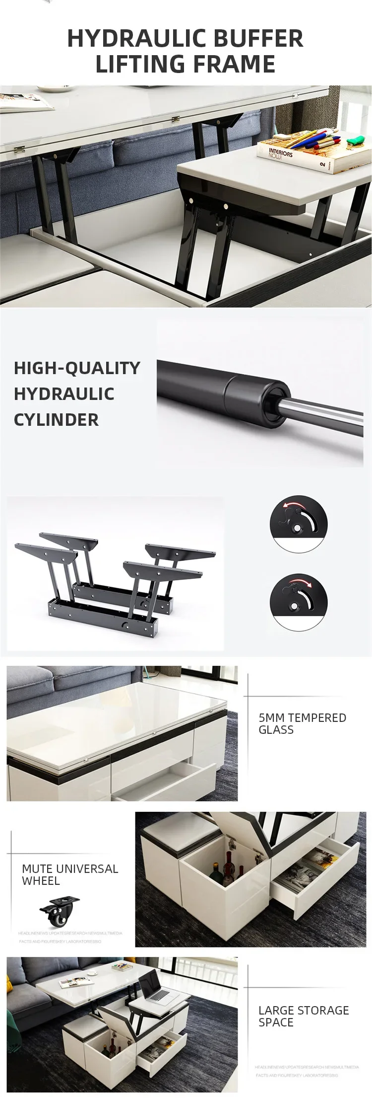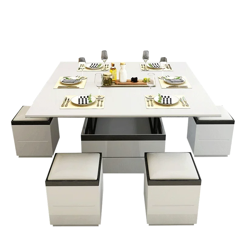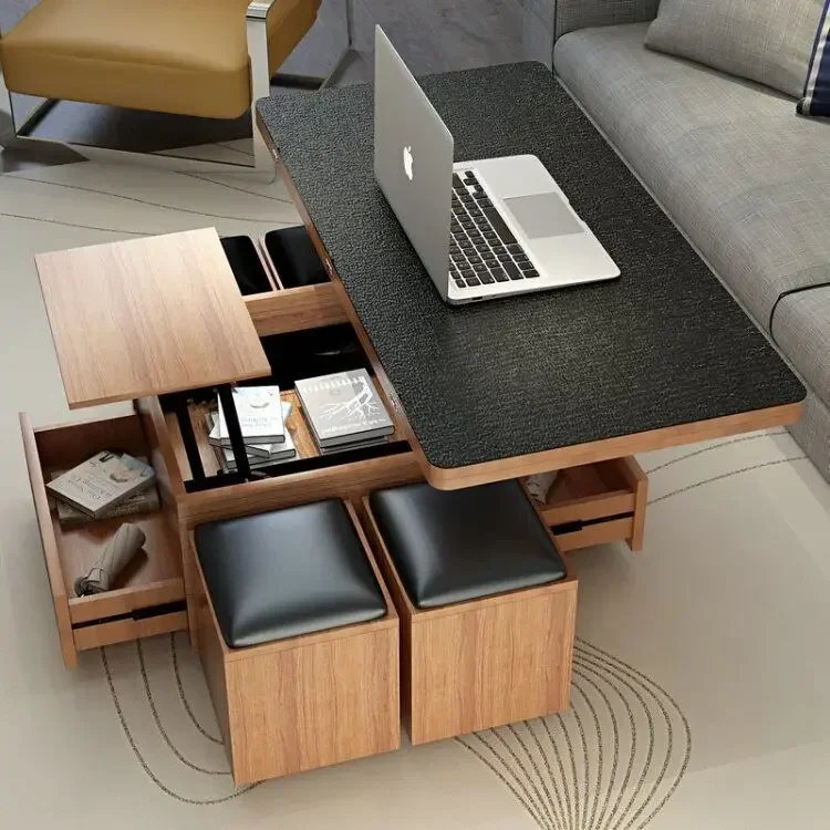 Small House Folding Coffee Table Desk Piano Lacquer Dining Table Telescopic Modern Multifunctional Use Storage Bench New