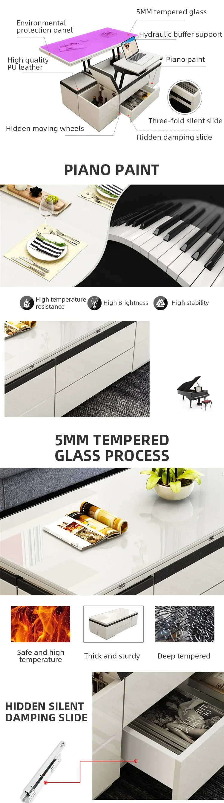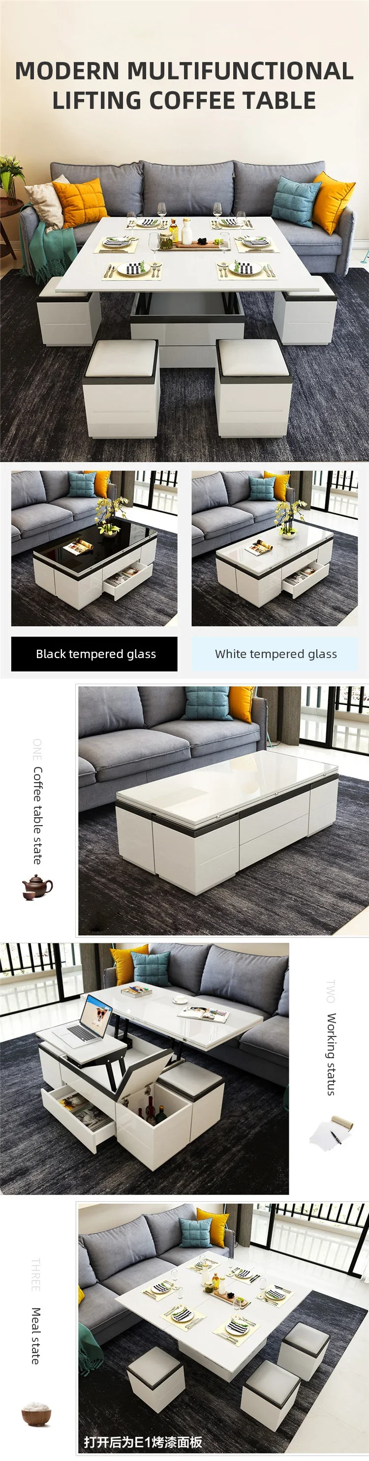 Material: Birch frame + 304 stainless steel + glass Design Style: Modern Appearance: Modern Maintenance: 10-year warranty Customization: Available Versatility: Multifunctional use as a coffee table, dining table, or storage bench **Elegant Craftsmanship and Modern Design** The Small House Folding Coffee Table Desk Piano Lacquer Dining Table Telescopic Modern Multifunctional Use Storage Bench is a testament to contemporary design and functionality. Crafted with a birch frame and adorned with a sleek piano lacquer finish, this piece is not only a stylish addition to any modern home but also a durable one. The table's versatility is evident in its ability to serve as a coffee table, dining table, or a practical storage bench, making it a smart choice for those who value space efficiency and multitasking furniture. **Tailored to Your Space and Style** Understanding that every home is unique, this table offers the flexibility to customize its dimensions to suit your specific needs. Whether you're looking to create a cozy reading nook or a spacious dining area, the Small House Folding Coffee Table can be adjusted to fit your space perfectly. The modern design seamlessly integrates with various interior styles, from minimalist to eclectic, ensuring that it remains a timeless piece in your home. **Built for Longevity and Convenience** The table's robust construction, featuring a 304 stainless steel support system and a tempered glass top, guarantees stability and durability. The 10-year warranty provides peace of mind, knowing that your investment is protected. This table is not only a functional piece of furniture but also a statement of quality and longevity. Its telescopic feature allows for easy storage when not in use, making it a practical choice for those with limited space. Whether you're seeking a coffee table to elevate your living room or a dining table to accommodate guests, this versatile piece is sure to impress.