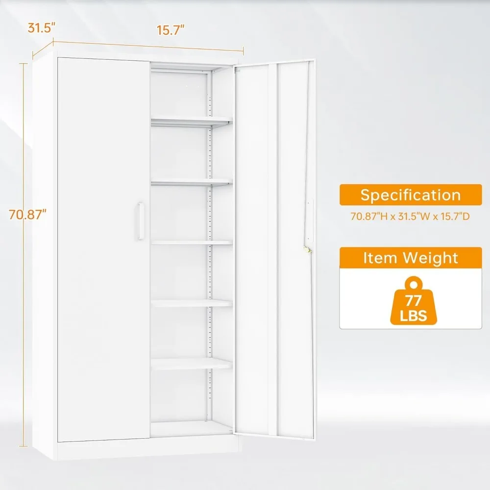 - 【LARGE STORAGE SPACE】Overall size of this metal cabinet is 71″H x 32″W x 16″D (H x W x D). There are two adjustable metal shelves in the metal storage cabinet, and two hanging rods in the drawer for hanging documents. The size of the drawer is H11.8*W30*D14.8.